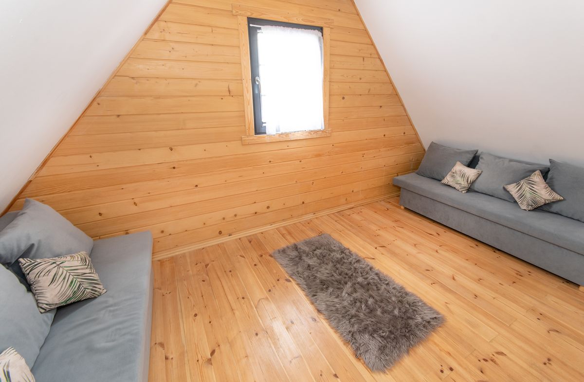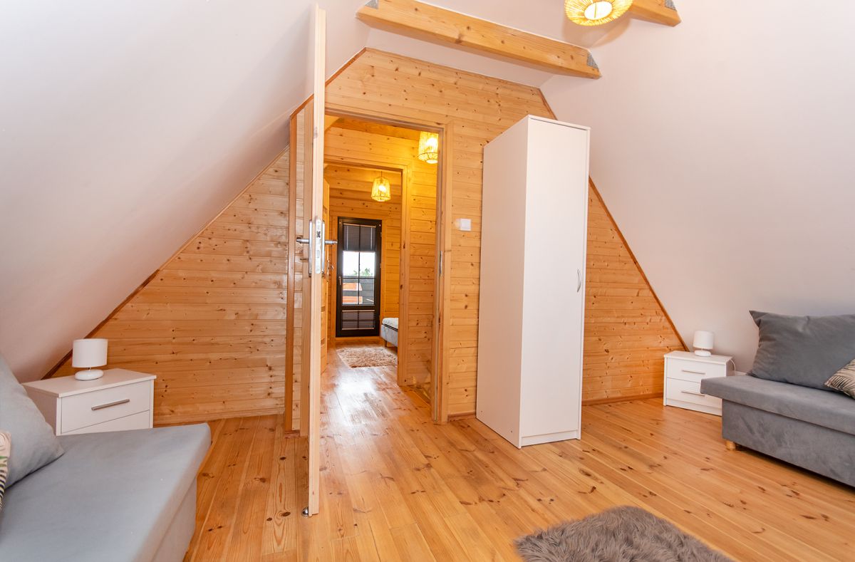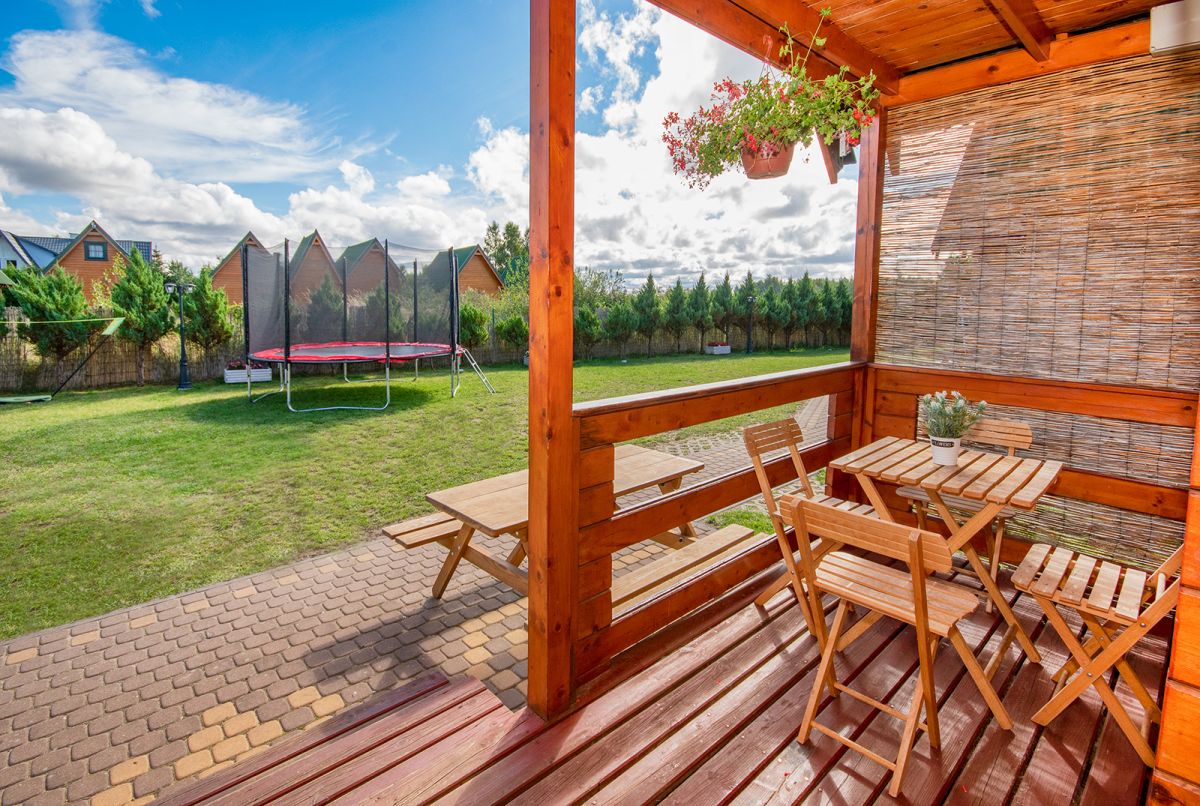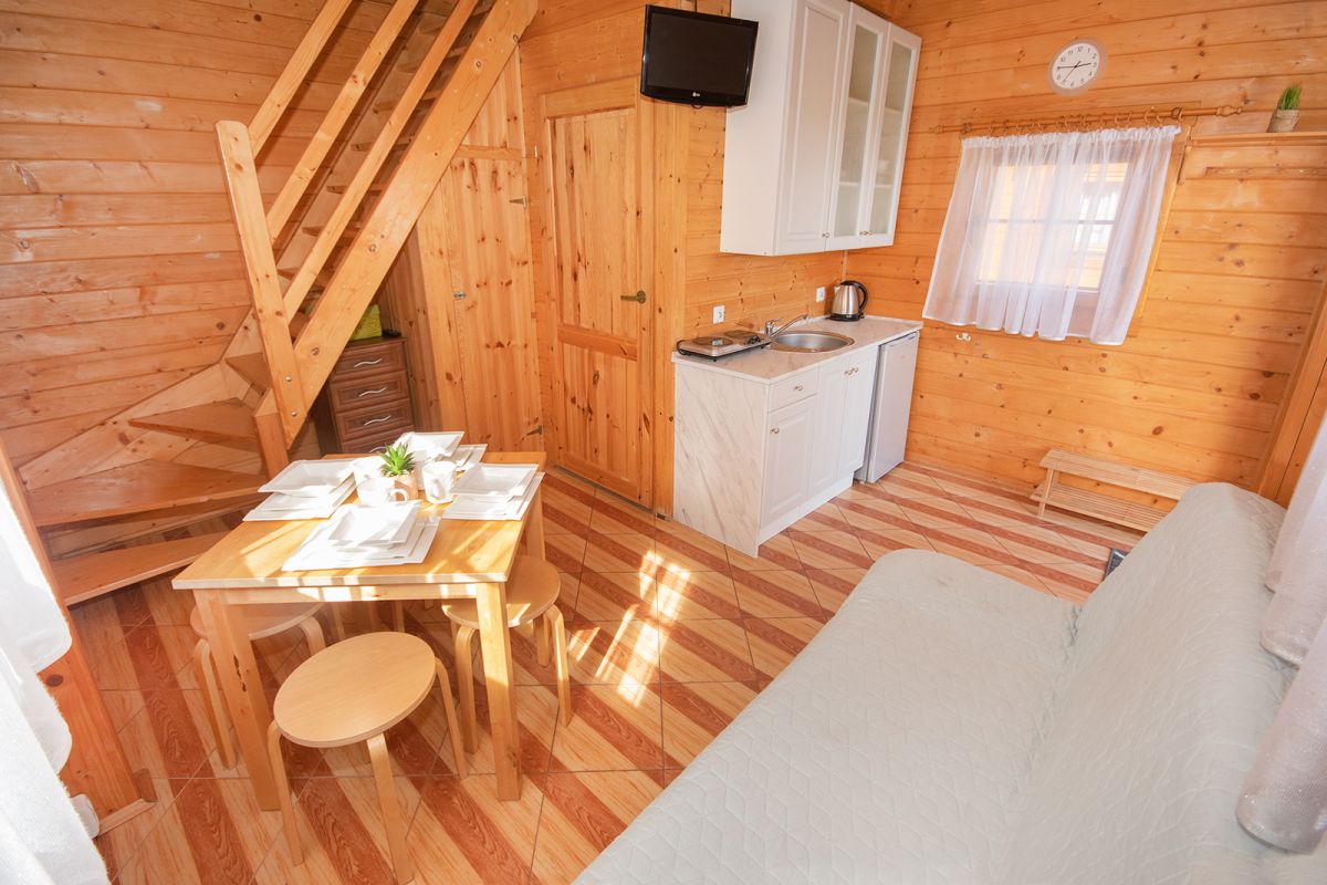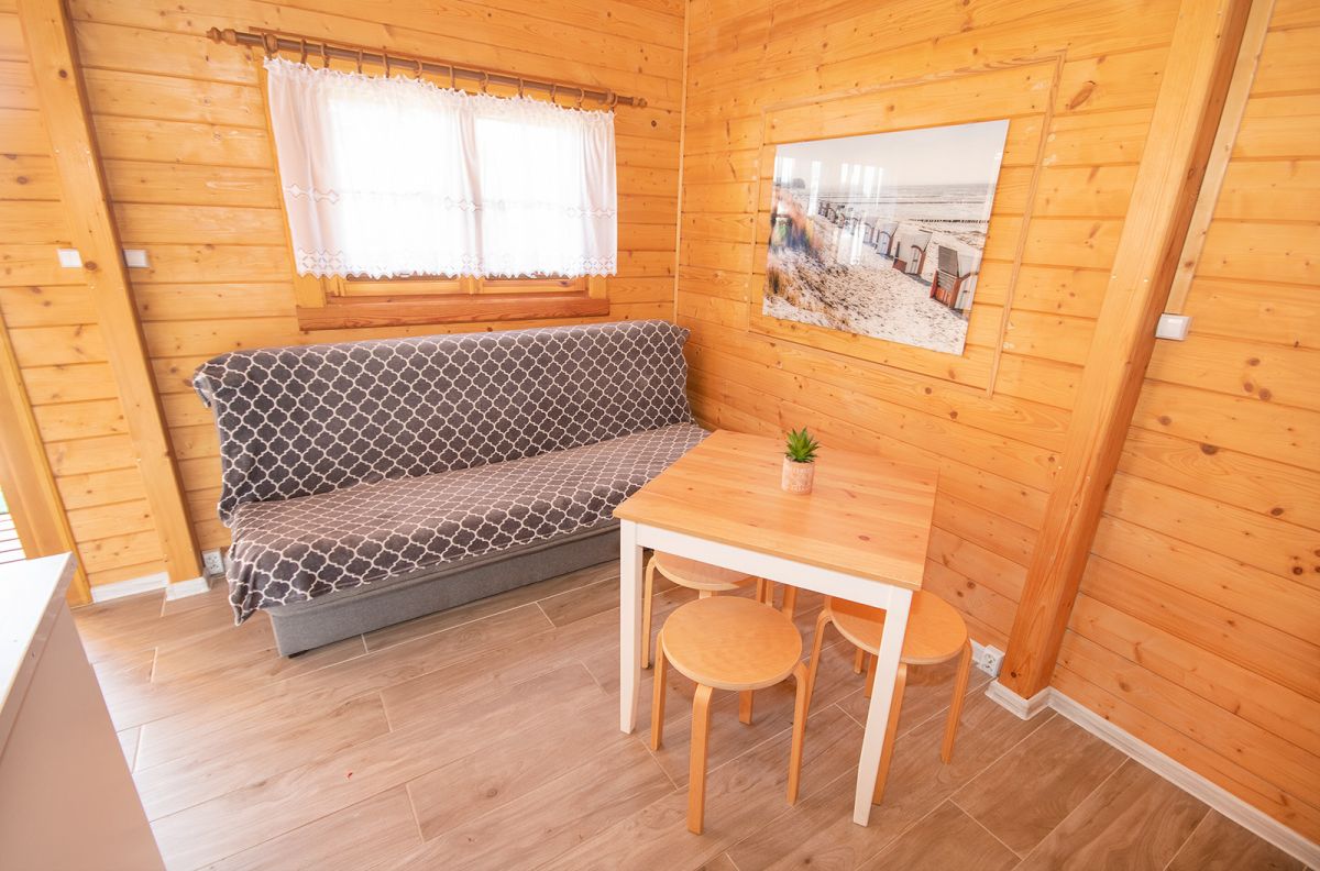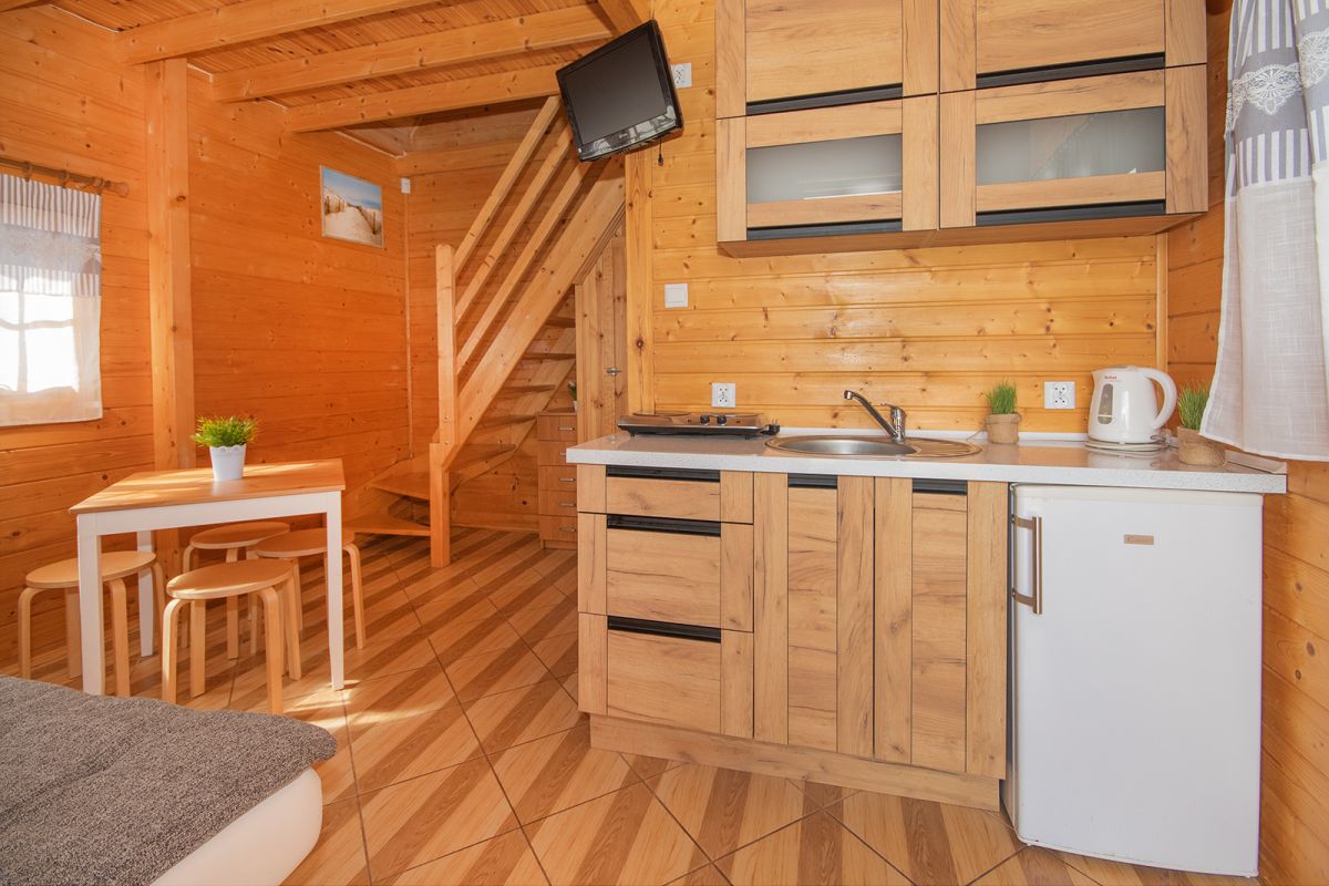 Mamy Państwu do zaproponowania nowe, 5-osobowe domki drewnianej konstrukcji. Na parterze każdego domku znajduje się salon z aneksem kuchennym (lodówka, kuchenka elektryczna, czajnik bezprzewodowy, naczynia) i łazienka. Na piętrze znajduje się sypialnia. Część parterowa dysponuje tarasem, a piętro balkonem. W każdym domku jest ponadto tv-lcd i sprzęt plażowy. Na terenie działki znajdą Państwo miejsce na grill, plac zabaw dla dzieci, parking.