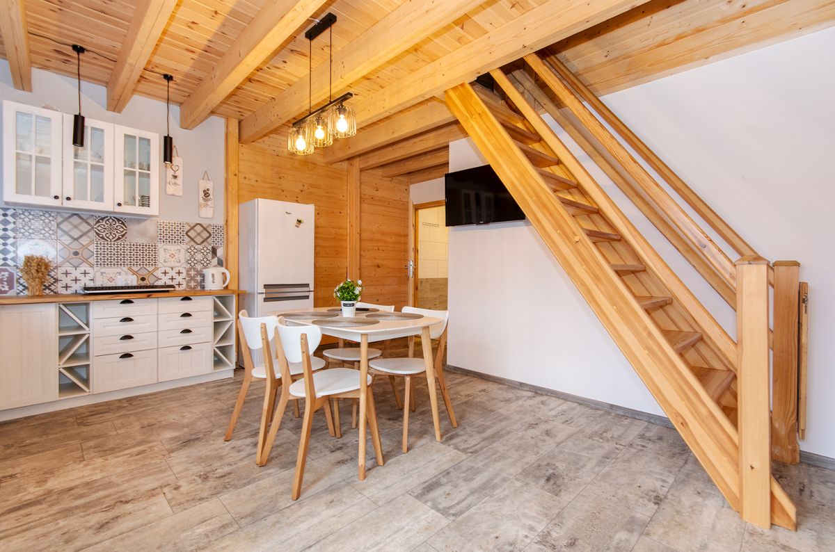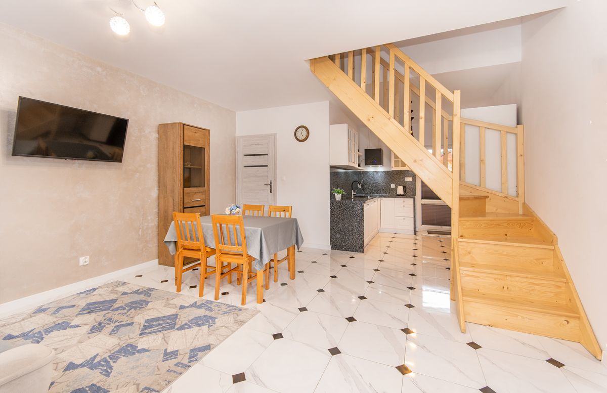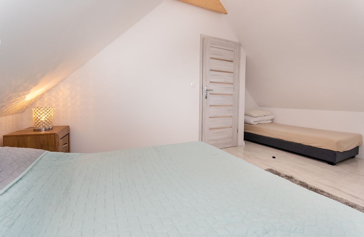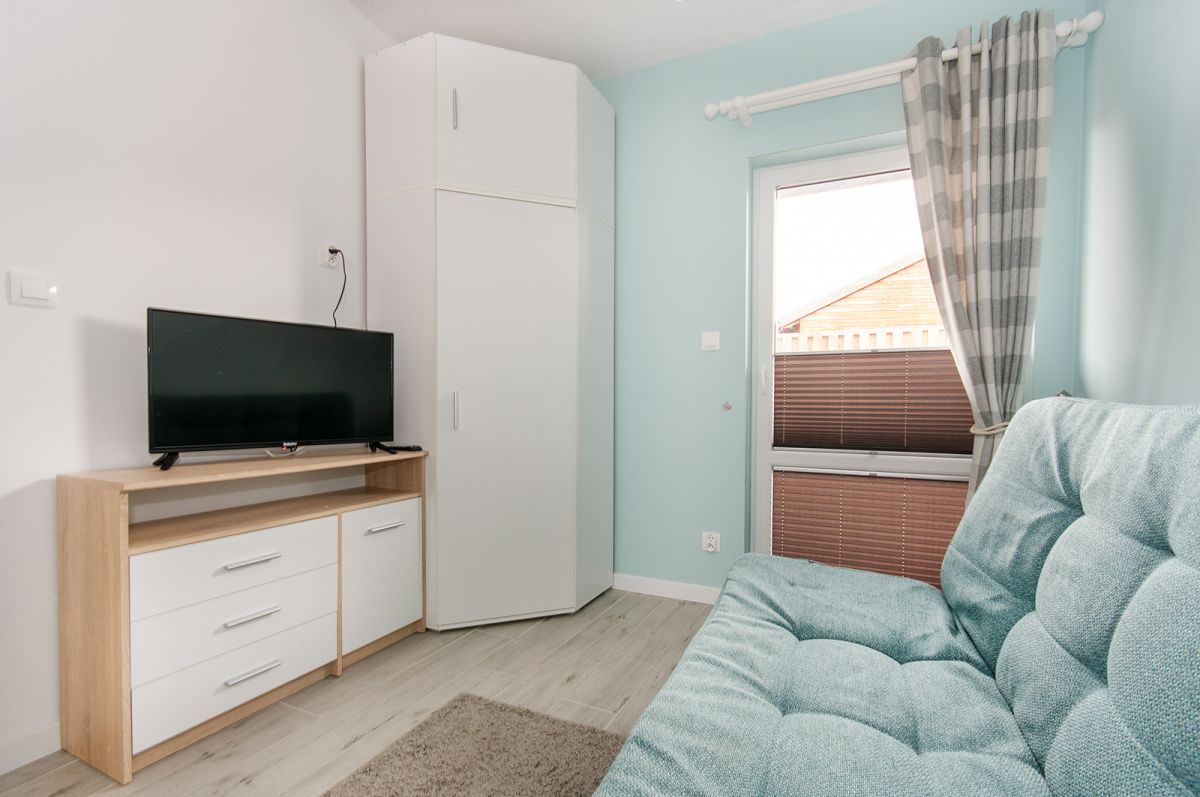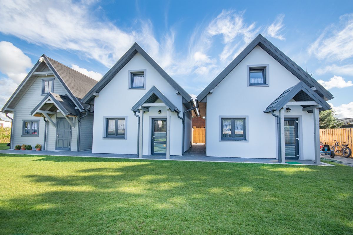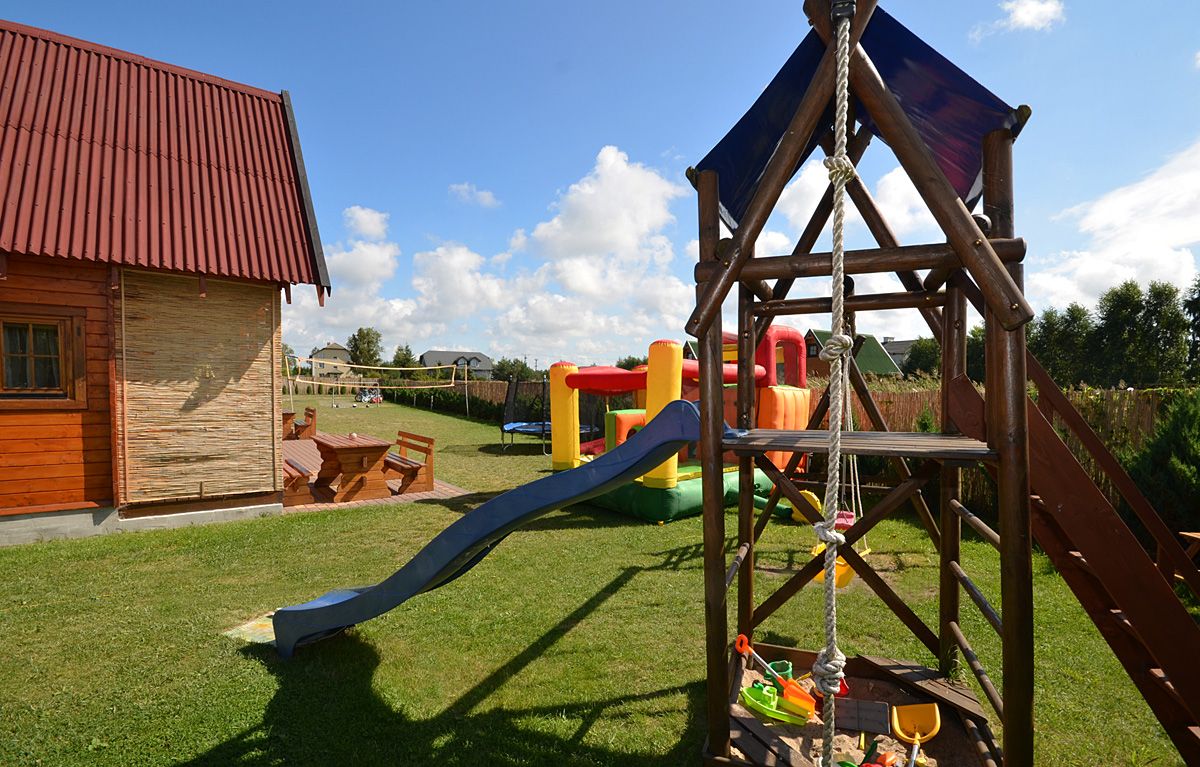 Mamy Państwu do zaproponowania nowe, 5-osobowe domki drewnianej konstrukcji. Na parterze każdego domku znajduje się salon z aneksem kuchennym (lodówka, kuchenka elektryczna, czajnik bezprzewodowy, naczynia) i łazienka. Na piętrze znajduje się sypialnia. Część parterowa dysponuje tarasem, a piętro balkonem. W każdym domku jest ponadto tv-lcd i sprzęt plażowy. Na terenie działki znajdą Państwo miejsce na grill, plac zabaw dla dzieci, parking.