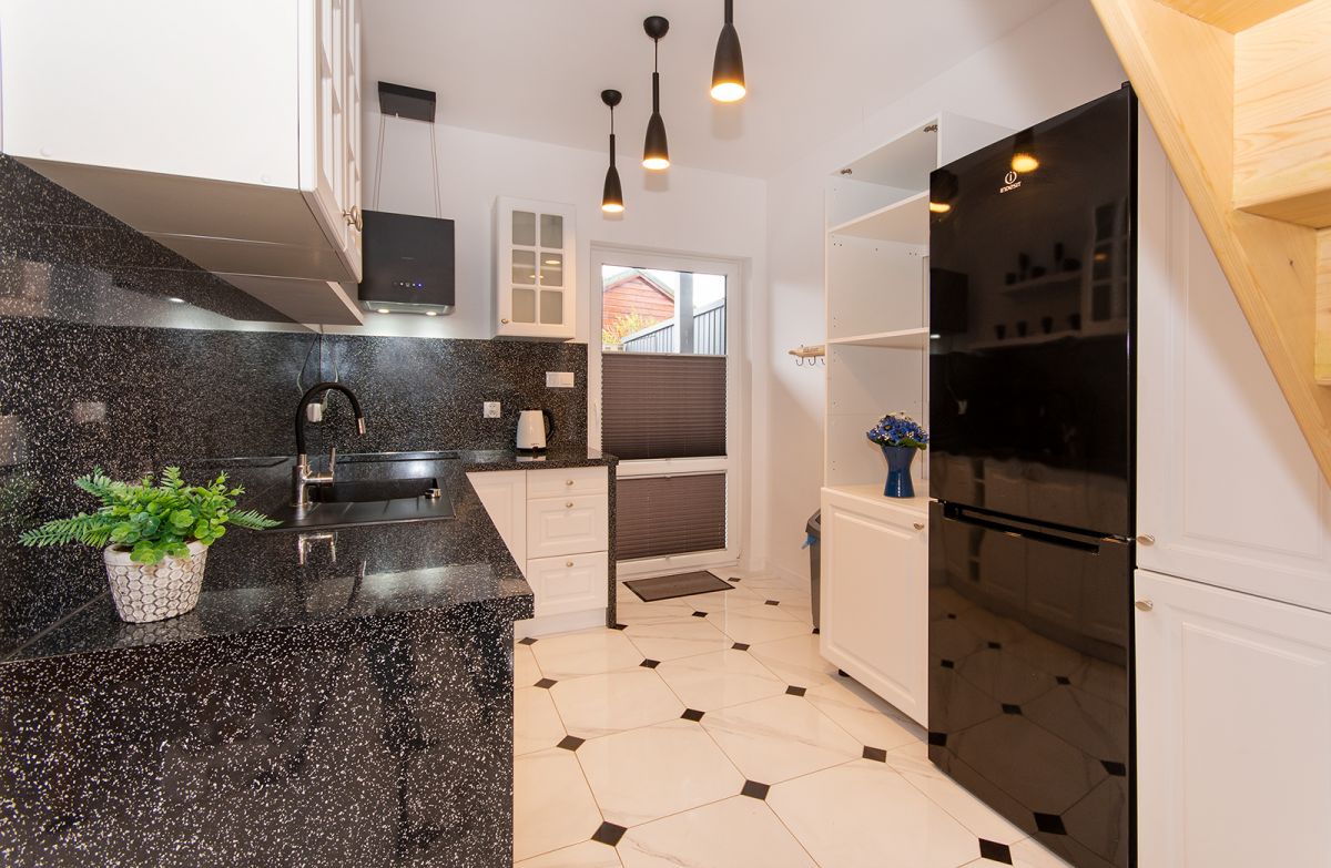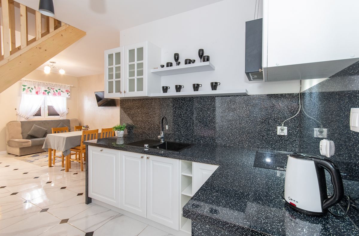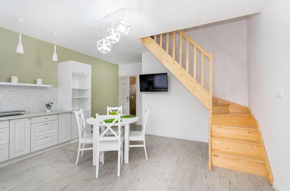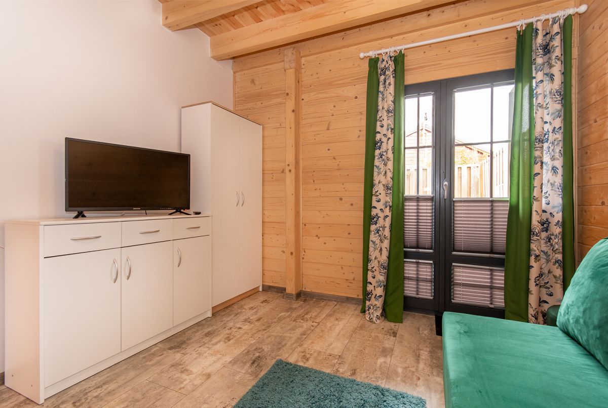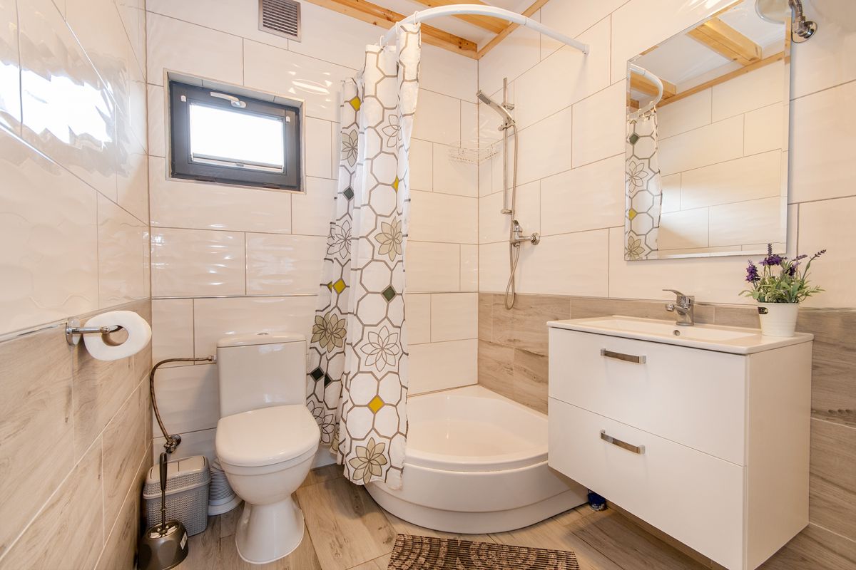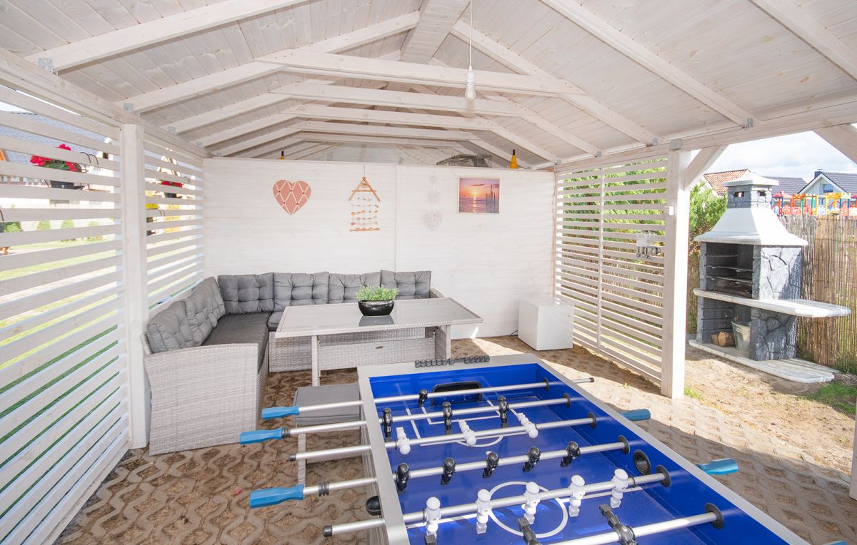 Mamy Państwu do zaproponowania nowe, 5-osobowe domki drewnianej konstrukcji. Na parterze każdego domku znajduje się salon z aneksem kuchennym (lodówka, kuchenka elektryczna, czajnik bezprzewodowy, naczynia) i łazienka. Na piętrze znajduje się sypialnia. Część parterowa dysponuje tarasem, a piętro balkonem. W każdym domku jest ponadto tv-lcd i sprzęt plażowy. Na terenie działki znajdą Państwo miejsce na grill, plac zabaw dla dzieci, parking.