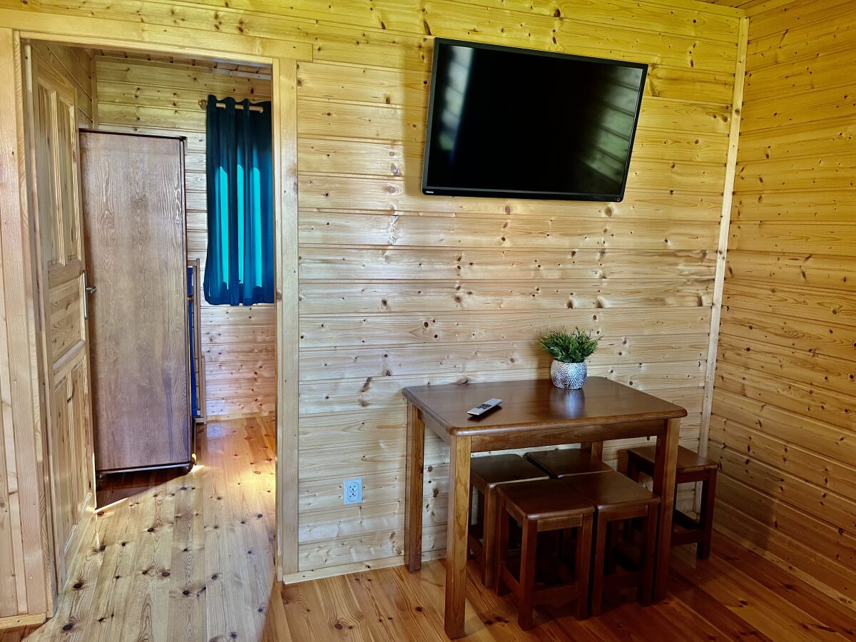 • Salon- wyposażony w 2-osobową kanapę, telewizor, stół + 5 taboretów.
