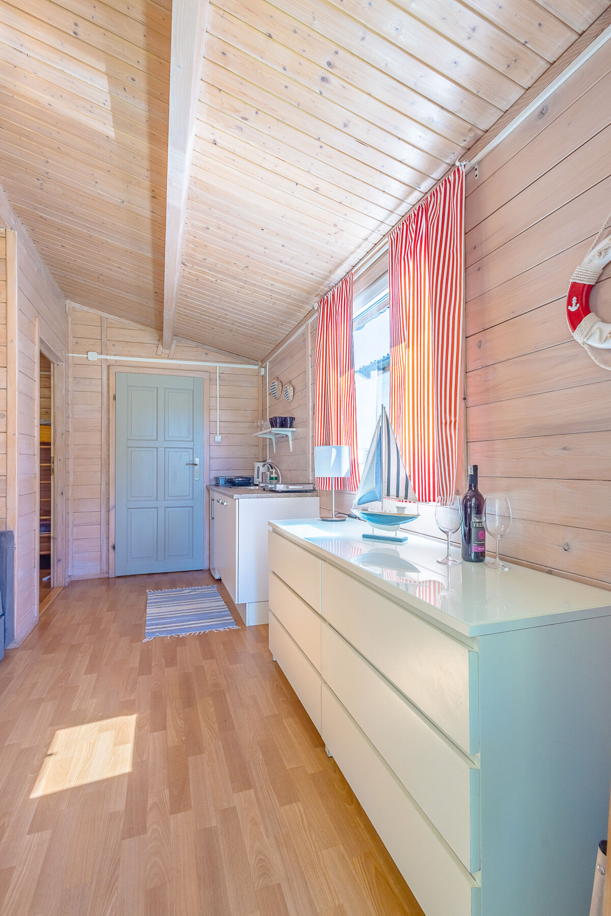 • aneks kuchenny: kuchenka elektryczna, czajnik, lodówka, naczynia, garnki oraz sztućce dla 5-ciu osób.