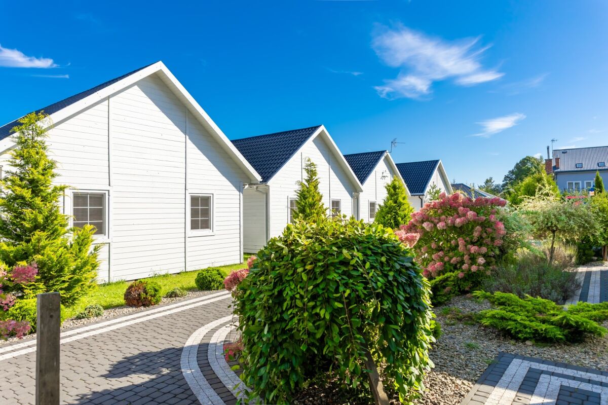 Oferowane przez nas domki składają się z salonu z częścią kuchenną, dwóch sypialni, łazienki oraz zadaszonego tarasu.