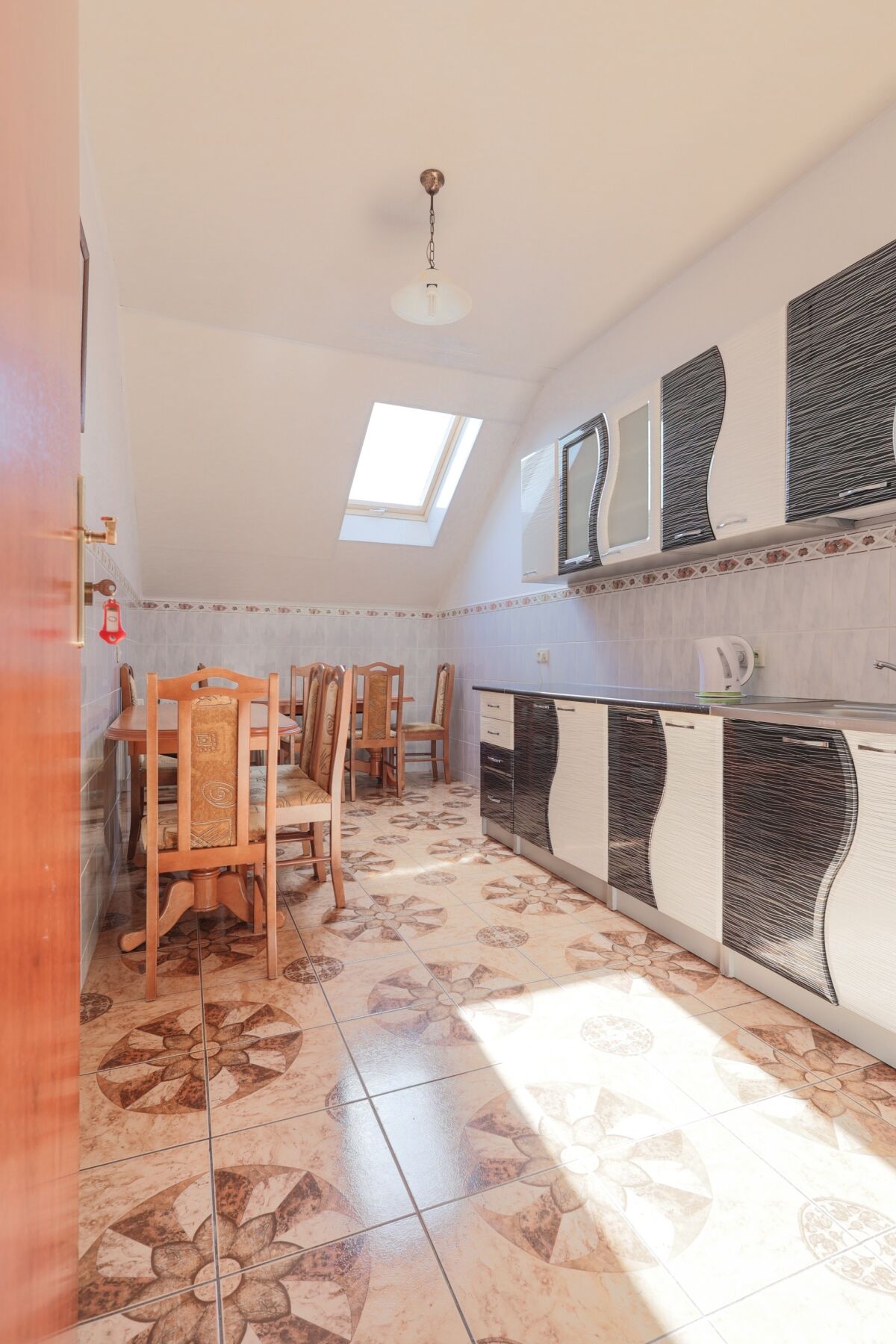 • aneks kuchenny z niezbędnym sprzętem (lodówka, płyta kuchenna, czajnik elektryczny, zastawa stołowa)