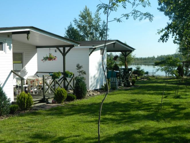 Do Państwa dyspozycji mamy 5 drewnianych domków letniskowych z widokiem na jezioro, oraz domek murowany. Wszystkie te obiekty są w pełni wyposażone i umeblowane. Każdy domek posiada aneks kuchenny z lodówką, własną łazienkę i telewizor.