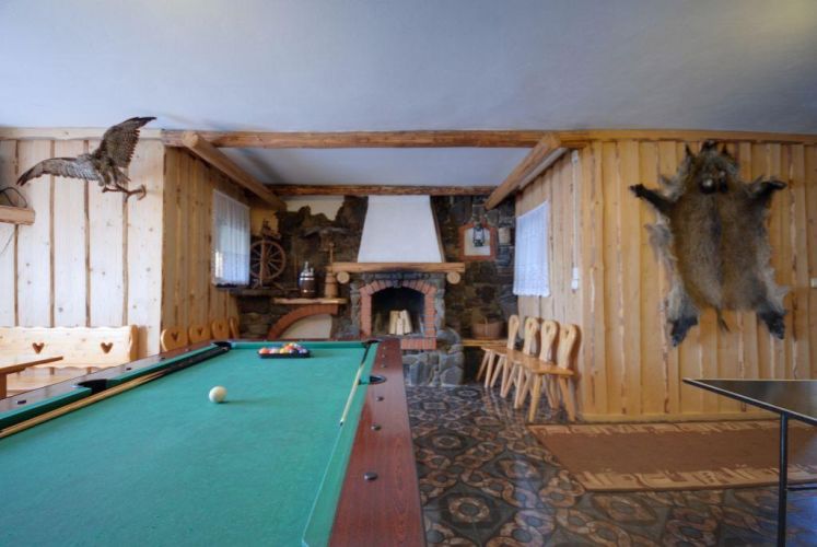 Do dyspozycji Gości kuchnia z lodówką, bilard, świetlica z kominkiem, altanka z grillem, plac zabaw, trampolina, bezpieczny parking.