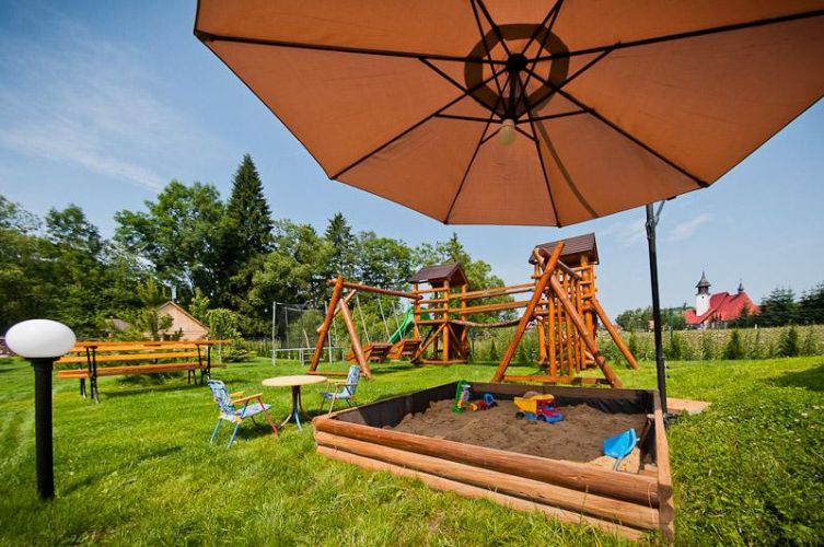 • Plac zabaw. Dla najmłodszych przygotowaliśmy piękny plac zabaw ze zjeżdżalnią, huśtawkami i drabinką oraz piaskownicę. Wasze pociechy mogą skorzystać również z rowerków, jeździków i zabawek.