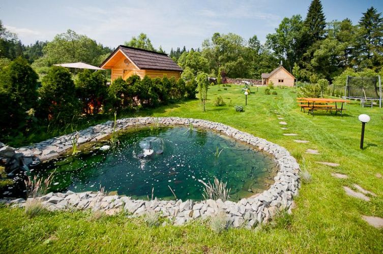 • Basen i Sauna. Latem zapraszamy wszystkich do kąpieli w naszym basenie zewnętrznym, w którym do września podgrzewamy wodę. Zapraszamy również do naszej sauny ogrodowej (dodatkowo odpłatna) typu Ruska Bania, opalanej drewnem, czynnej przez cały rok, gdzie latem chłodzimy się w basenie, zaś zimą nacieramy się śniegiem.