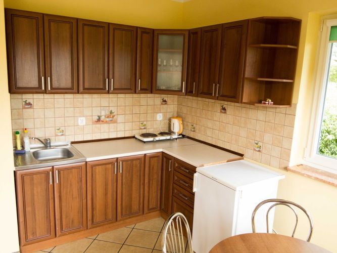 Do dyspozycji Gości posiadamy 4 domki letniskowe całoroczne o wysokim standardzie, 6-cio osobowe (łącznie 24 miejsca). Każdy domek składa się z dwóch oddzielnych pokoi, w których znajdują się po dwa pojedyncze łóżka, salonu z kominkiem i aneksem kuchennym, łazienki z wc i prysznicem. Domki są bardzo przestronne i funkcjonalne. Wyposażone są w lodówkę, niezbędne naczynia, sztućce, garnki, TV. Zapewniamy pościele, ręczniki. Do dyspozycji gości przy każdym domku znajduje się altana wraz z grillem i miejscem do siedzenia.