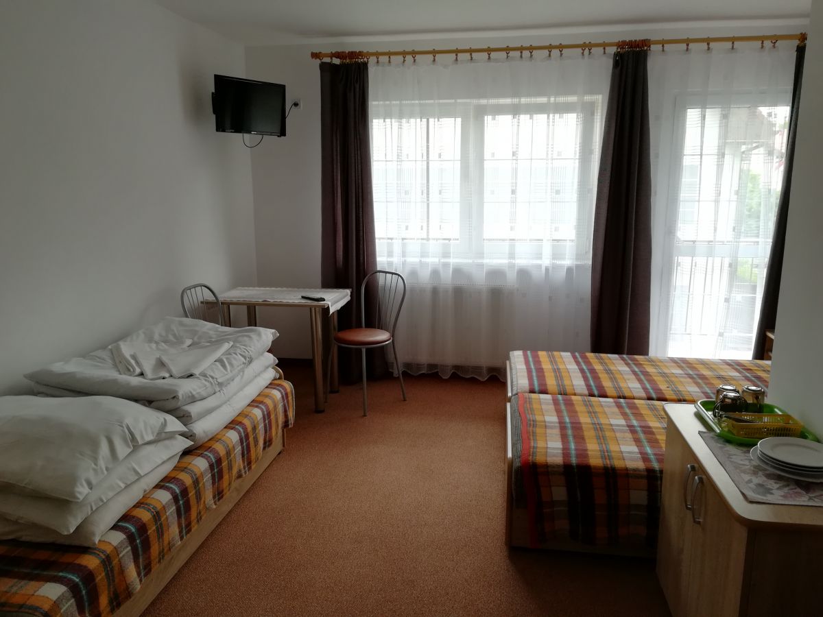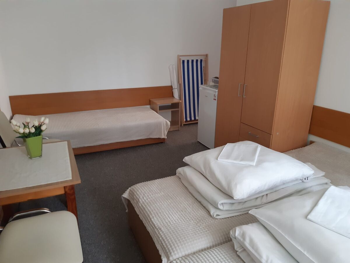 Oferujemy Państwu schludne pokoje1, 2, 3, 4 osobowe i jeden zestaw typu studio. Każdy z pokoi posiada swoją łazienkę, TV, leżak, parawan, lodówkę , naczynia i sztućce oraz czajnik. Do dyspozycji naszych gości jest dobrze wyposażona ogólnodostępna kuchnia, świetlica,grill a dla maluchów mini plac zabaw. Dla zmotoryzowanych gości mamy bezpłatny parking. Dla miłośników internetu WI-FI. Z naszego domu do plaży jest ok 500m. /10min spacerem/ a do jeziora ok 200m.