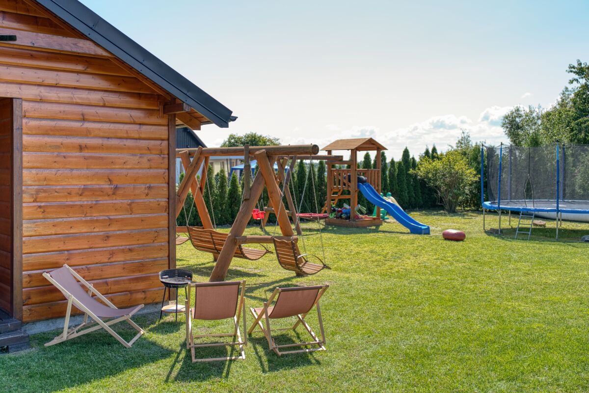 Przy każdym domku na tarasie znajduje się grill i leżaki, dla najmłodszych gości na terenie jest trampolina, huśtawka, ślizgawka, piaskownica….