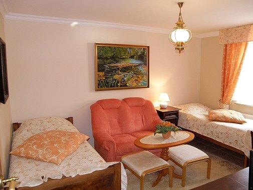 Oferujemy Państwu pokoje gościnne 2-, 3-, 4- osobowe, które wyposażone są w TV, łazienkę i radio oraz apartament. W obiekcie można korzystać z lodówek i aneksu kuchennego.
