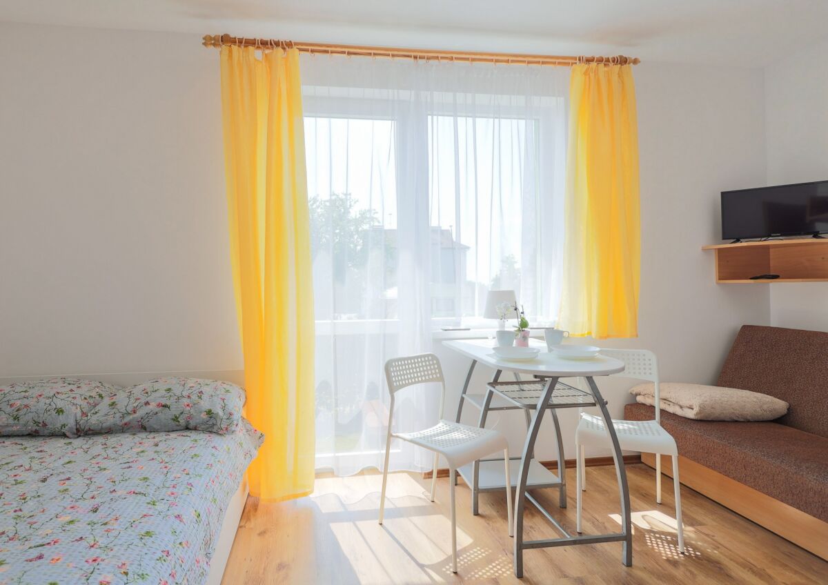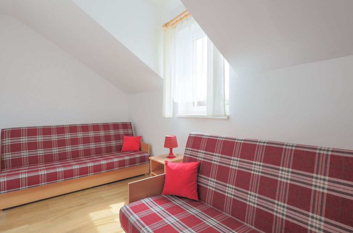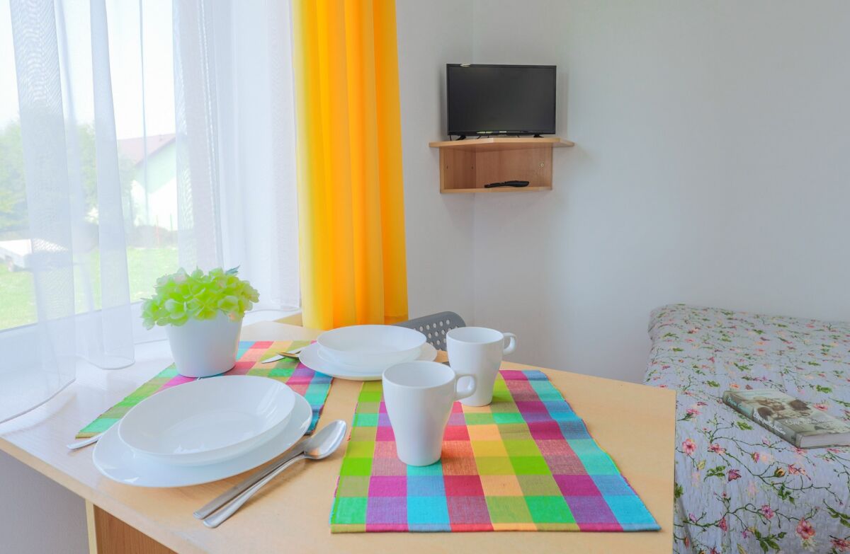 Oferujemy Państwu wypoczynek w pokojach z pełnym węzłem sanitarnym. Pokoje wyposażone są w telewizor, lodówkę, czajnik bezprzewodowy, podstawowe naczynia.