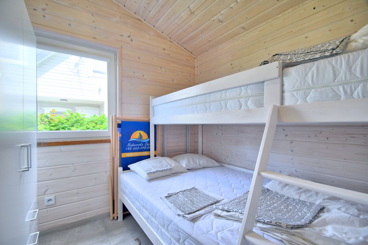 Każdy domek posiada dwie oddzielne zamykane sypialnie na pierwszym piętrze. Na dole pokój dzienny z kominkiem, jadalnią oraz aneksem kuchennym i łazienkę. Domki jednorazowo gościć mogą 4,5, 6,7 do max. 9 osób bez żadnych dostawek! (po wcześniejszym ustaleniu). Z myślą o osobach niepełnosprawnych przewidzieliśmy udogodnienia (szerokie przejazdy i podjazdy na wózek) , które pozwolą im cieszyć się wczasami w naszym ośrodku Nadmorska Oaza” domków Jarosławiec - Jezierzany.