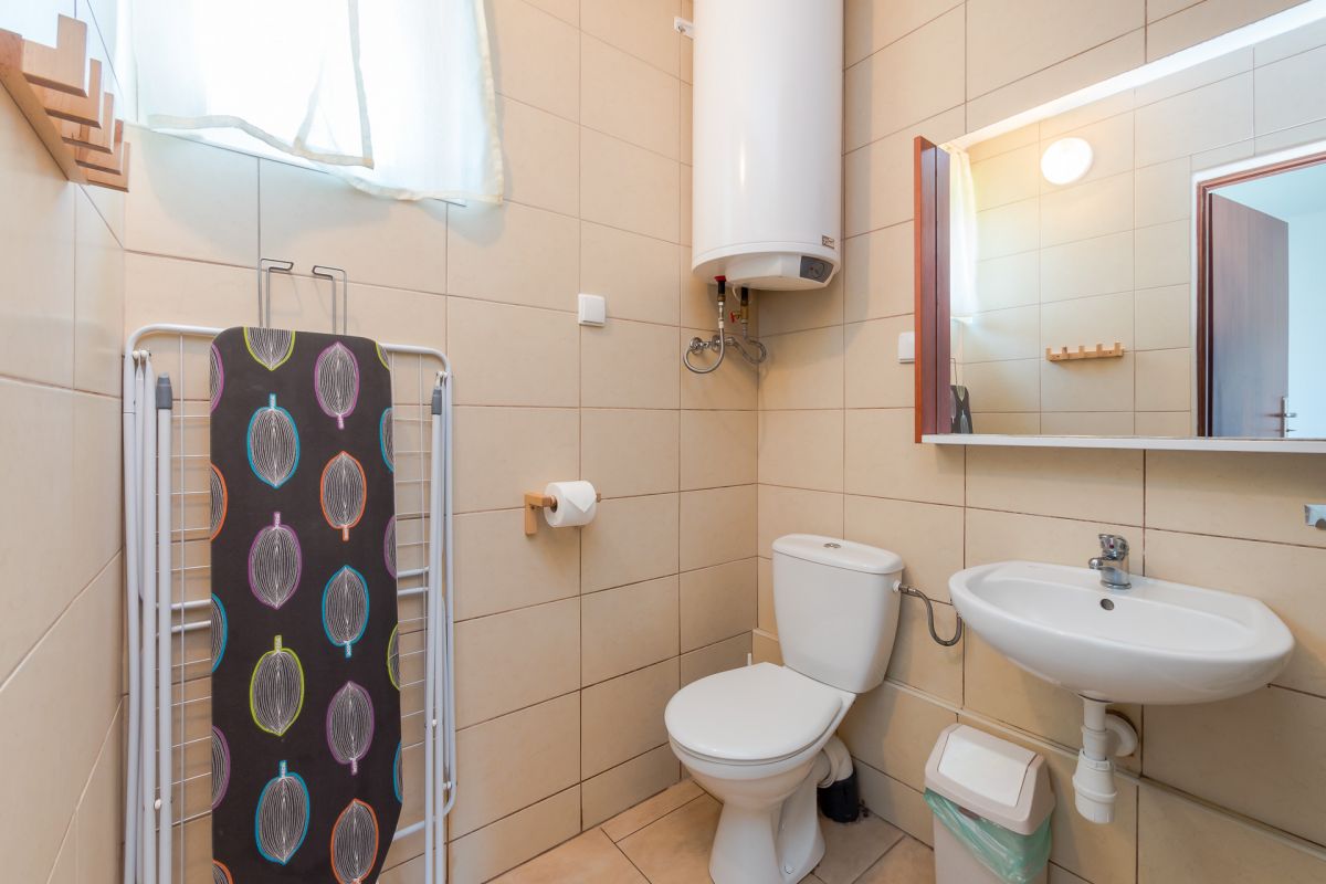 Ponadto każdy domek wyposażony jest w parawan, żelazko oraz deskę do prasowania.