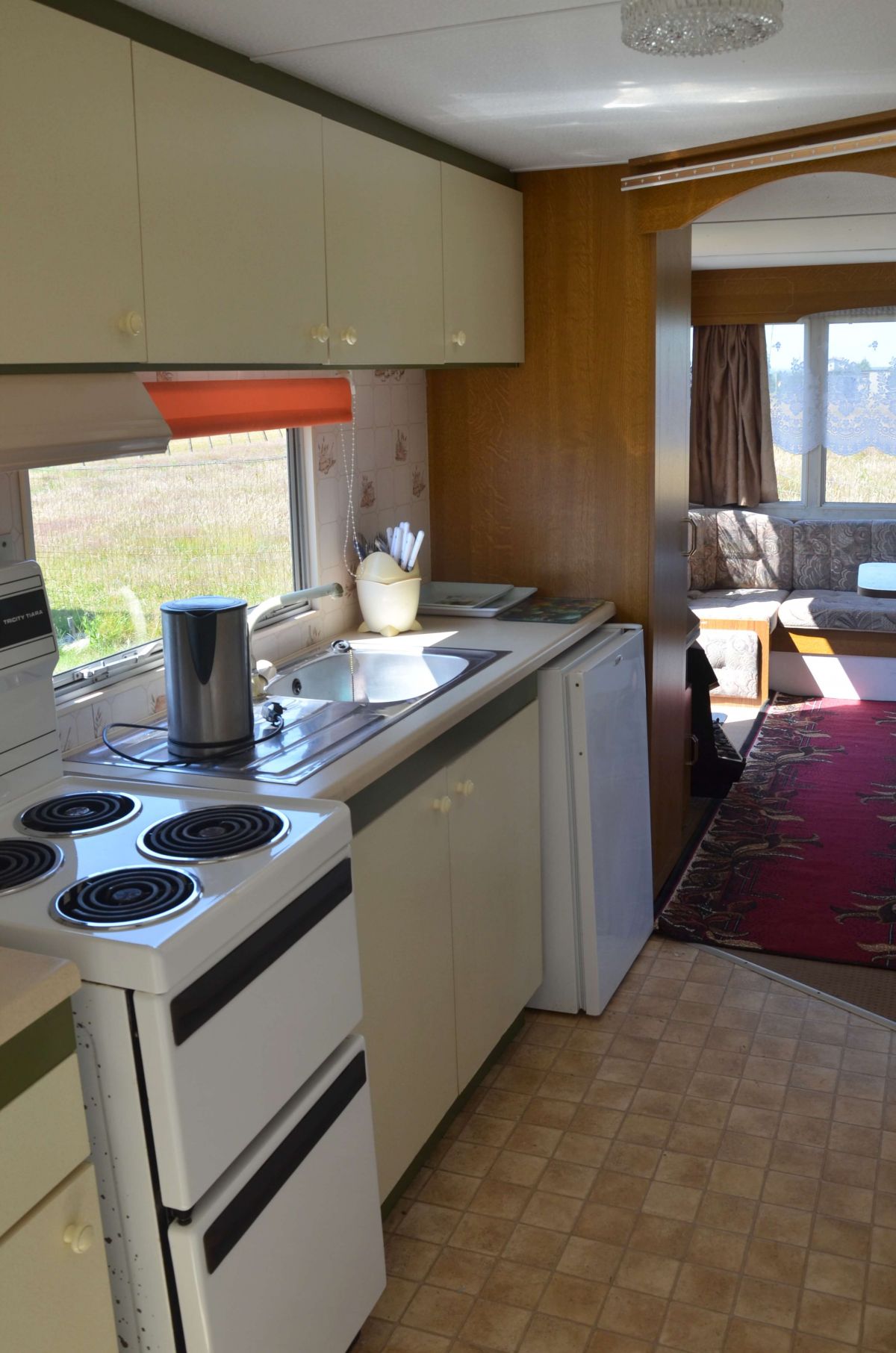 • aneks kuchenny z wyposażeniem: kuchenka elektr. 2-palnikowa, lodówka, czajnik, zastawa stołowa i kuchenna