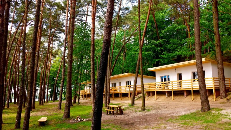 Oferujemy 60 miejsc noclegowych w 10 wolnostojących domkach. Domki ogrzewane, murowane, dwupokojowe i trzypokojowe z aneksem kuchennym, wyposażonym w pełen zestaw naczyń, kuchenkę elektryczną i lodówkę. W każdym domku łazienka z pełnym węzłem sanitarnym, telewizor, dostęp do internetu, taras na którym można grilować. Z wszystkich domków rozciąga się widok na jezioro, piękne o każdej porze roku. Domki są kompleksowo wyremontowane, na nowo umeblowane i wyposażone.