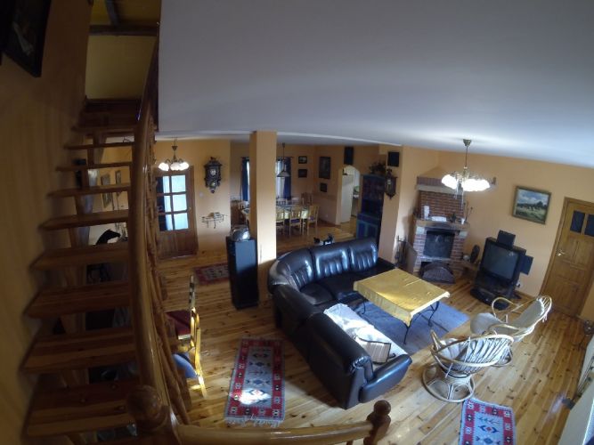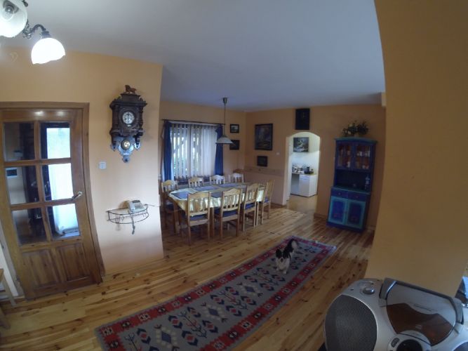 Do dyspozycji gości jest 5 pokoi - od 2 do 5-osobowych (komfortowo wyposażone), kuchnia (również w pełni wyposażona), 3 łazienki z prysznicami i ogromny salon z kominkiem.