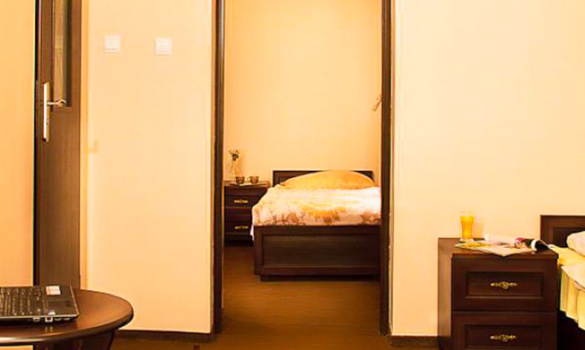 Dysponujemy 40 miejscami noclegowymi w 13 pokojach 2,3,4 osobowych z pełnym węzłem sanitarnym oraz TV. Część pokoi posiada balkon lub taras. Teren jest ogrodzony i oświetlony.