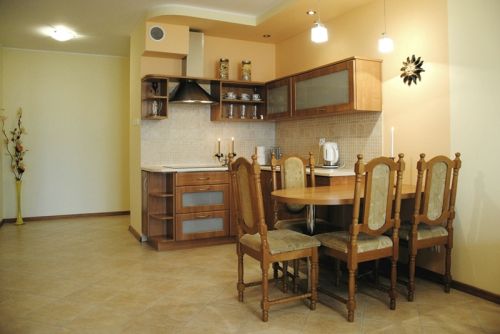 • Dużego tarasu-balkonu, na którym znajduje się duży stół i 6 wygodnych krzeseł.