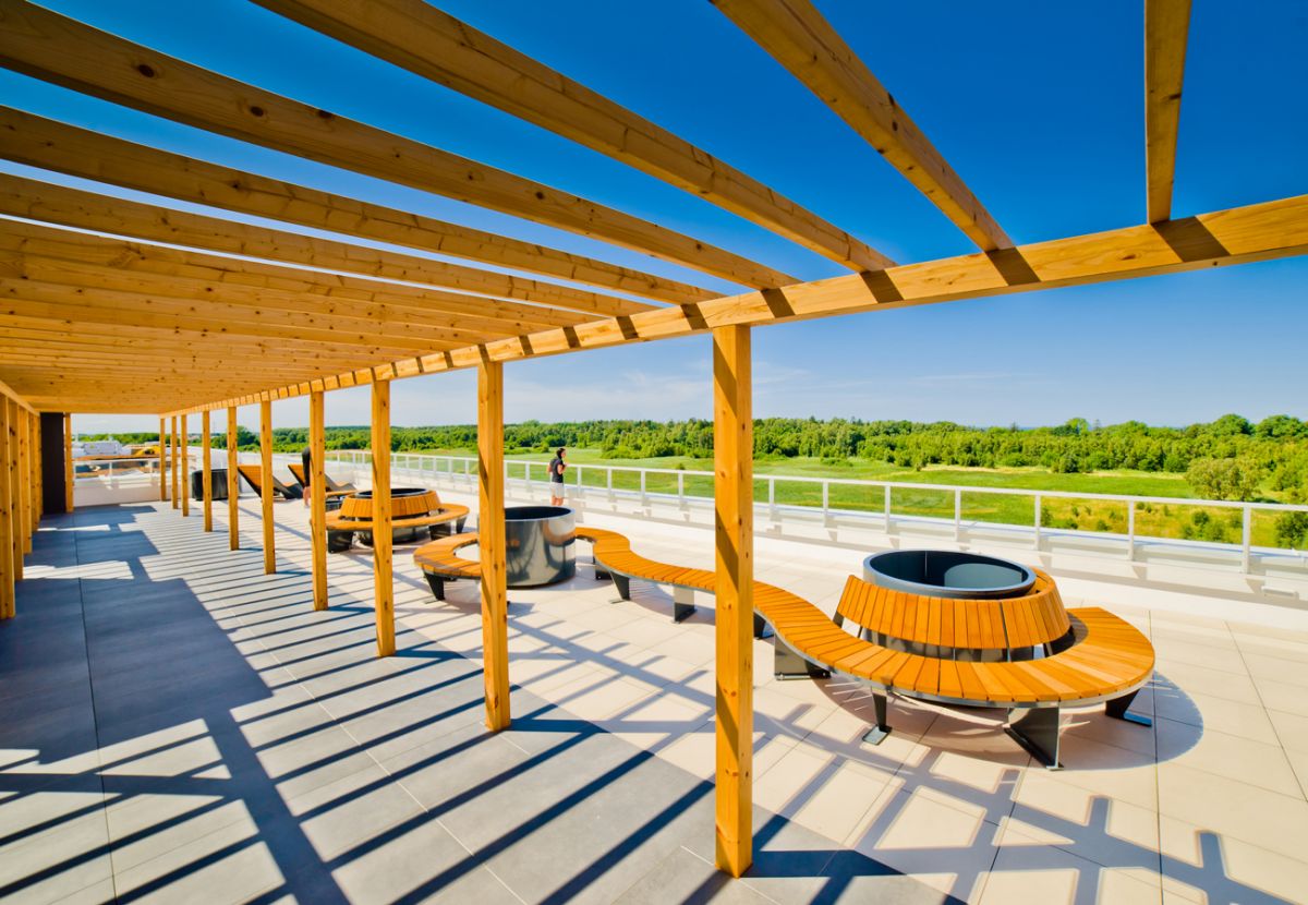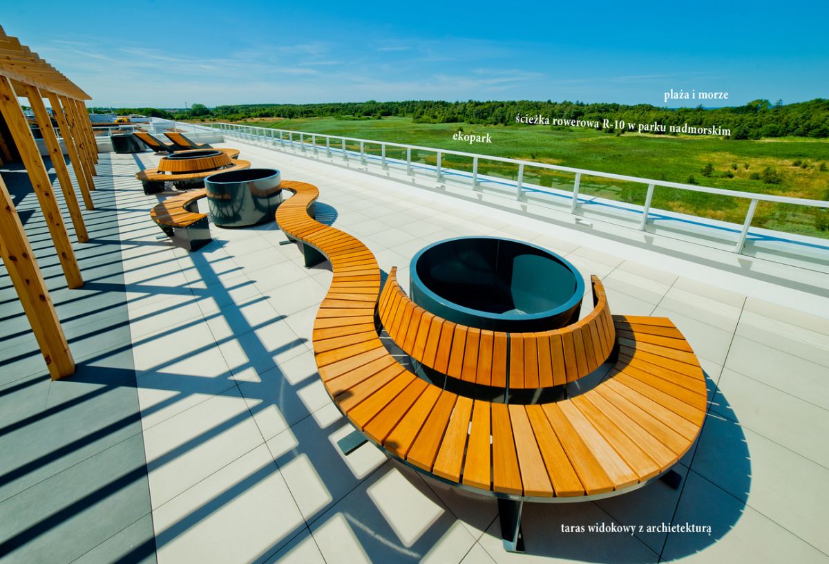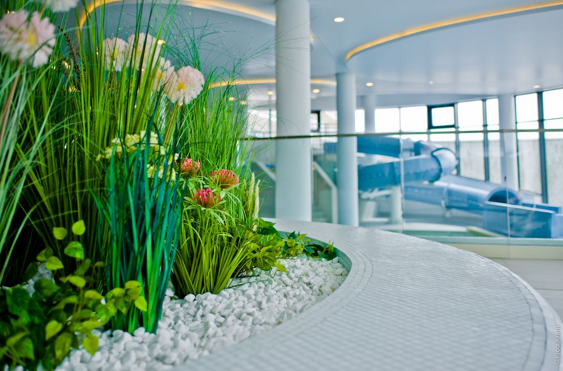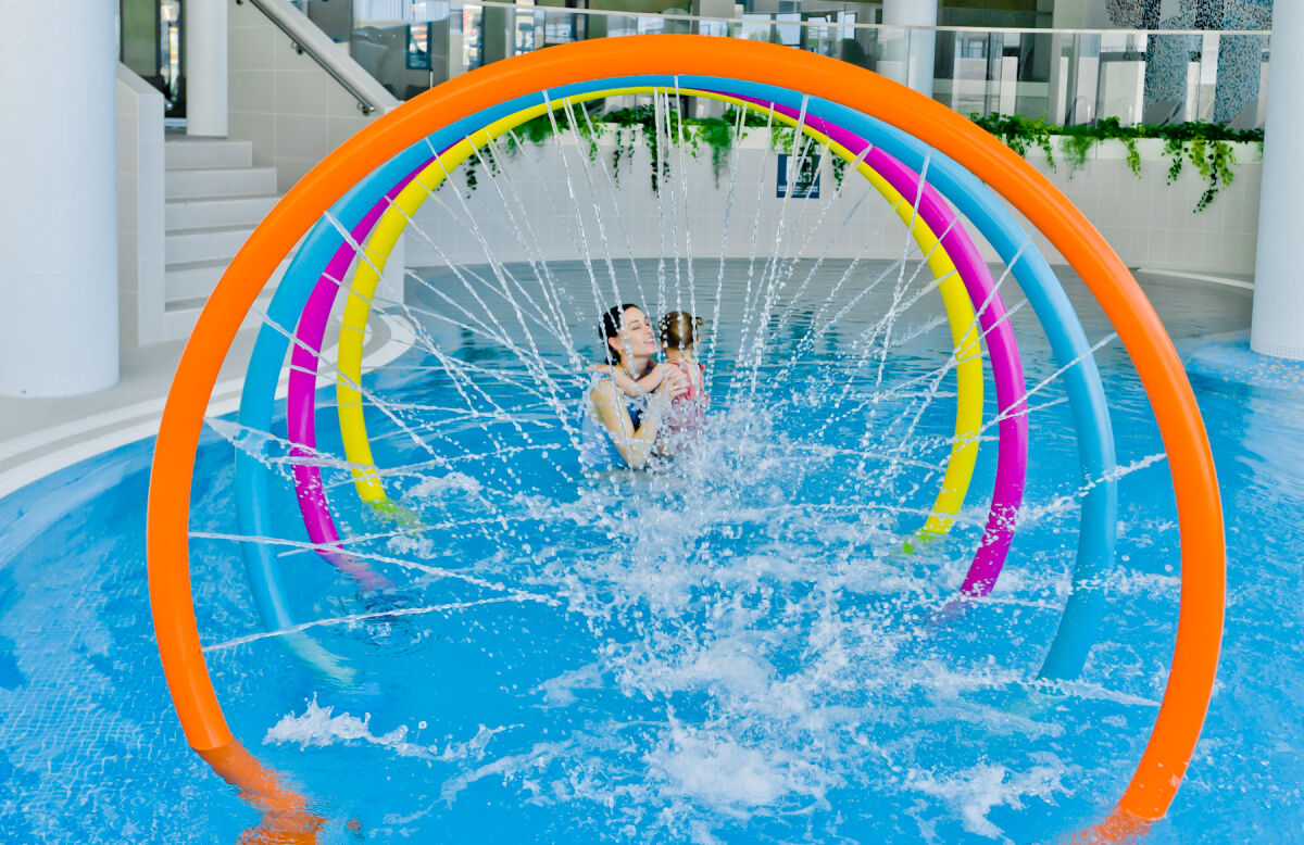 - całoroczna strefa basenowa: jacuzzi, leżaki, bicze wodne, gejzery, baseny wewnętrzne, rynna wodna, wodny plac zabaw dla dzieci, duży plac zabaw.