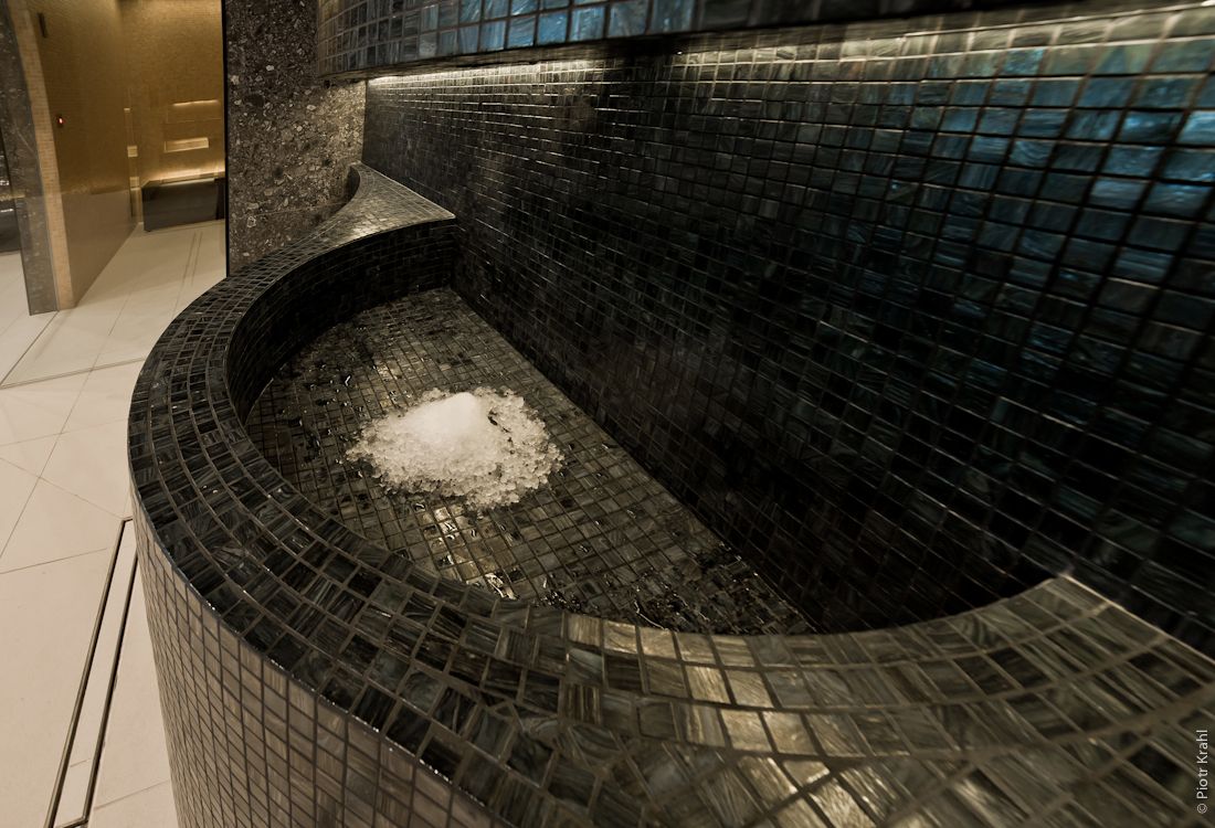 - strefy wewnętrznej saun: sauny suchej, parowej, ciepłe kamienne leżaki
