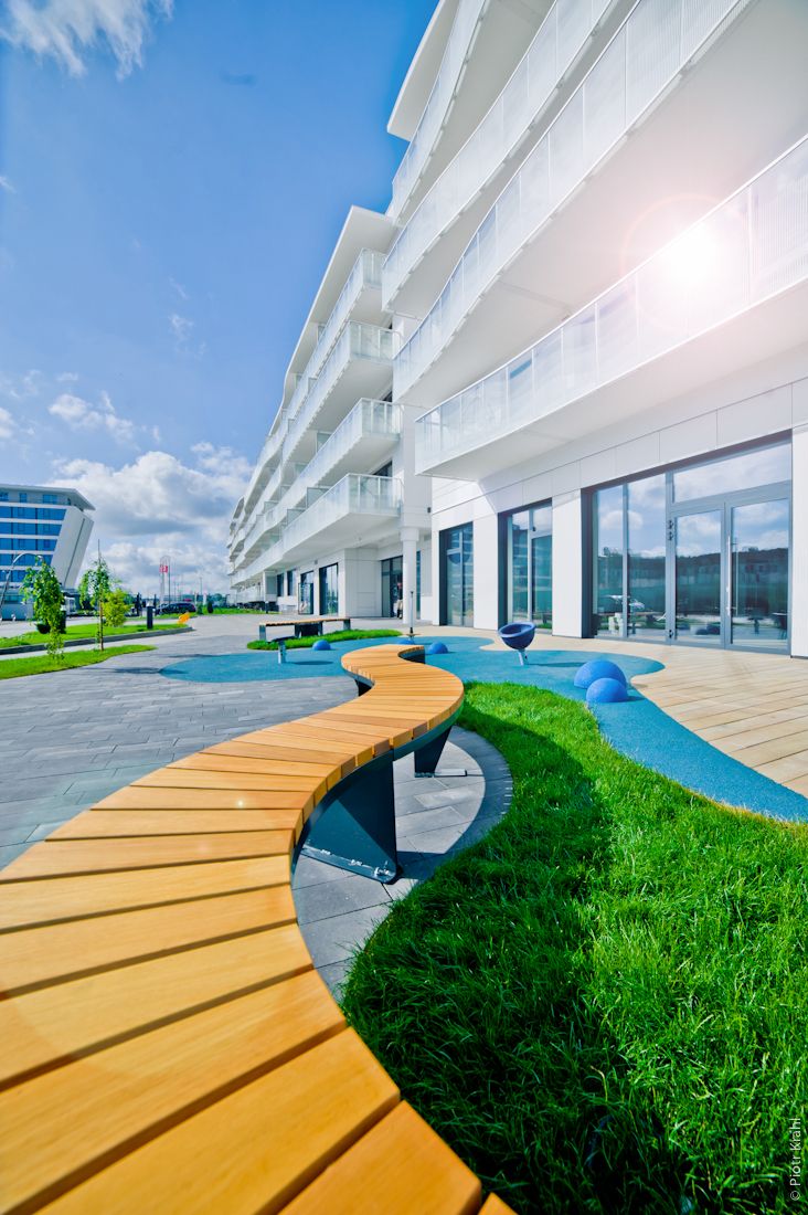Klimatyczne miejsca na mapie kołobrzeskiego kurortu to niewątpliwie nowo wybudowany kompleks wypoczynkowy usytuowany w kameralnej dzielnicy zachodniej miasta w bezpośrednim sąsiedztwie parku nadmorskiego i plaży. Zachodnia plaża słynie ze swej przestronności i czystości. Dyskretne usytuowanie obiektów z dala od hałasu miasta, pośród zieleni drzew nadmorskiego parku i wydm czynią z nich prawdziwą oazę spokoju, idealne miejsce całorocznego wypoczynku.Do plaży jest około 5 minut spacerem (plaża oddzielona jest tylko malowniczym parkiem nadmorskim). Plaża w Kołobrzegu posiada międzynarodowy certyfikat-Błękitnej Flagi przyznawany co roku.