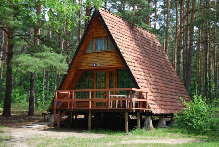 Domek czteroosobowy wyposażony w kompletny węzeł sanitarny: natrysk, WC, umywalka oraz telewizor kolorowy z podstawowymi programami satelitarnymi.