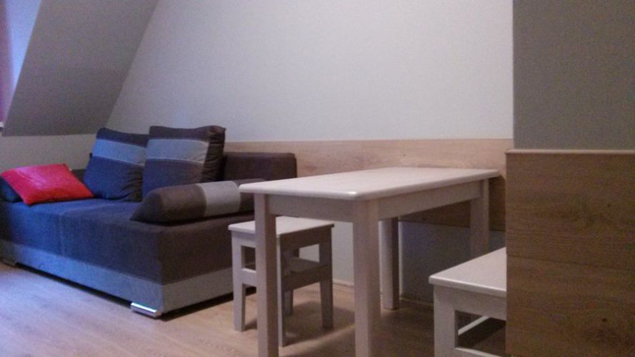 Wyposażenie: ogrzewanie, drewniana podłoga/parkiet, prysznic, toaleta, łazienka, telewizor, aneks kuchenny, lodówka, kuchenka mikrofalowa, czajnik elektryczny.