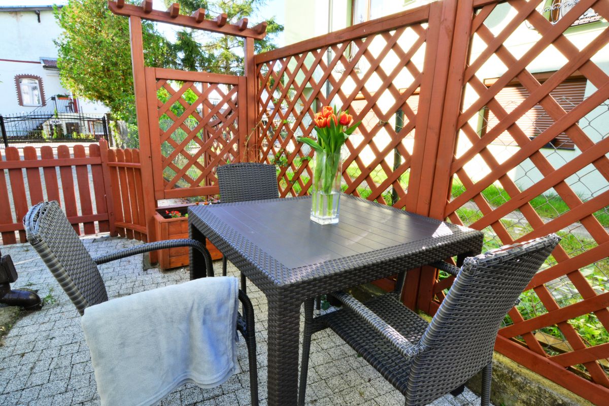 dostępne: ogólnodostępny aneks kuchenny, miejsce na grilla, stolik z parasolami, taras na piętrze - gdzie może być dostępny przez czas pobytu, parking ogrodzony-gratis i mini plac zabaw dla dzieci.