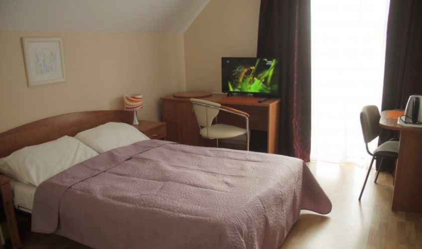 Dla gości przygotowano pięć pokoi 2-osobowych (możliwość dostawienia dodatkowego miejsca noclegowego) z łazienką i balkonem. W skład wyposażenia każdego pokoju wchodzi: lodówka, czajnik oraz TV. Na terenie posesji znajduje się parking.