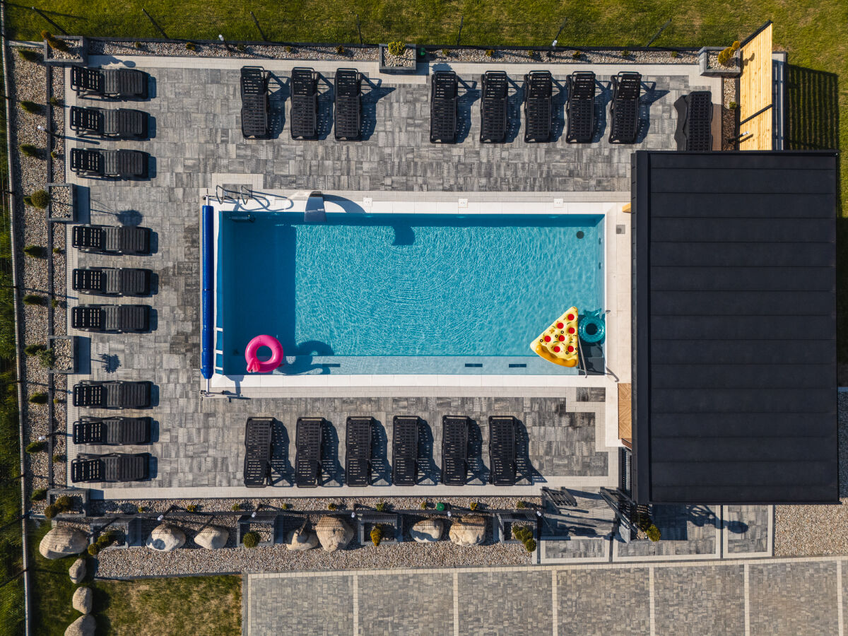 Przy ośrodku: bezpłatny ogrodzony parking, drewniany domek z grillem, miejsce na ognisko, plac zabaw: piaskownica, zjeżdżalnia, huśtawka, basen letni, trampolina oraz dużo terenu zielonego.