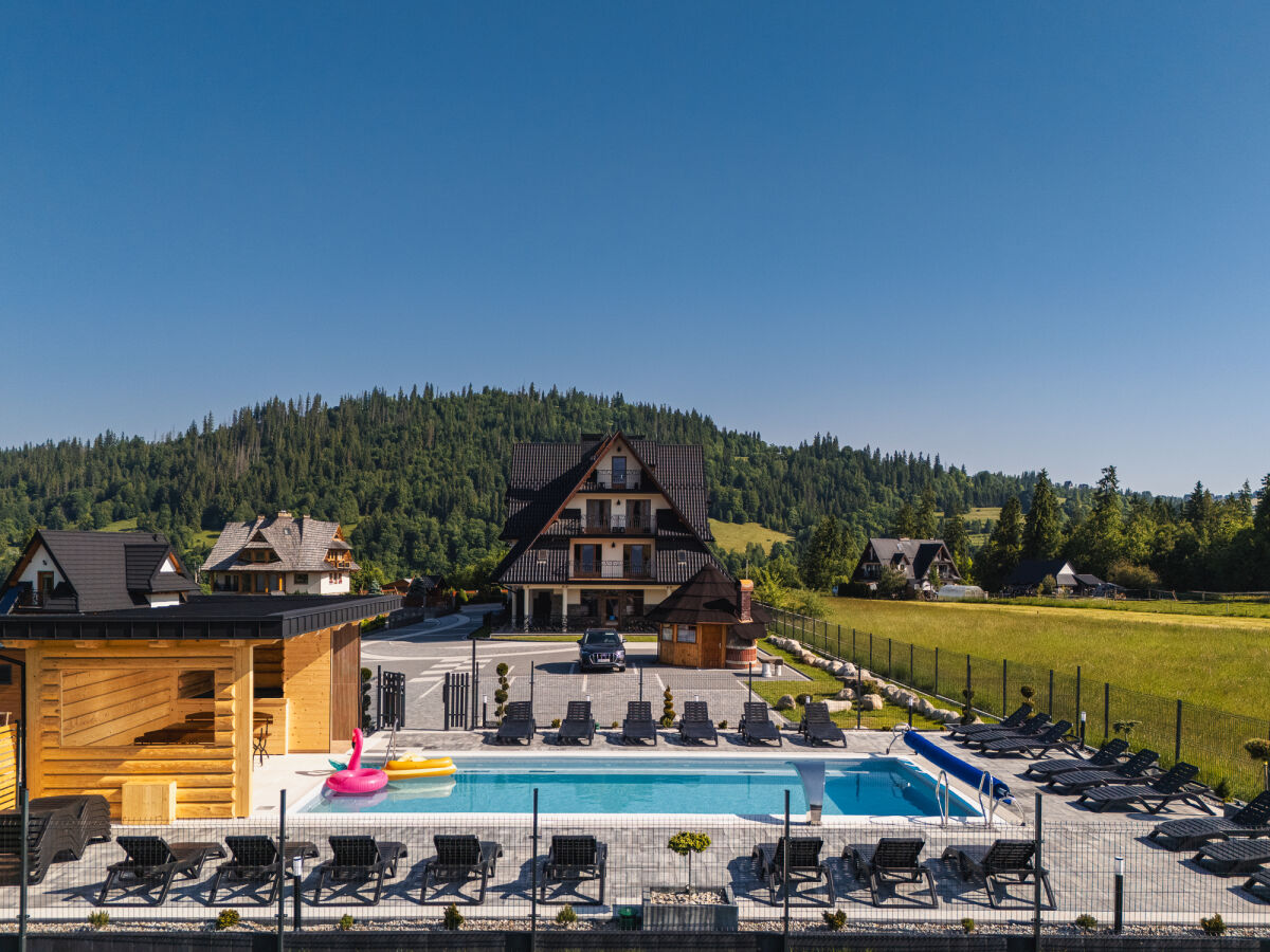Jeden ośrodek dwa standardy: klimatyzowana sala,nowoczesny wystrój, komfortowe pokoje z aneksem, balkonem i widokiem na Tatry, wygodne łazienki z suszarka do włosów i ręcznikami ,parking, plac zabaw, domek grillem, basen letni.