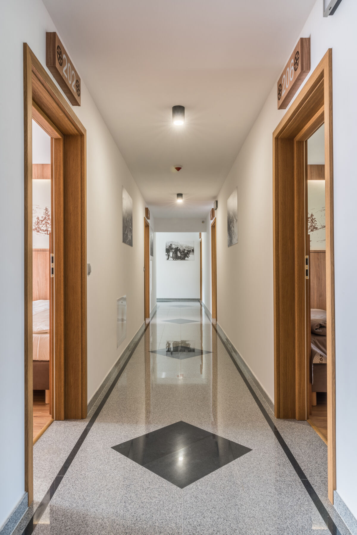Pokoje te to elegancja nowoczesnych wnętrz połączona ze stylem góralskim.
