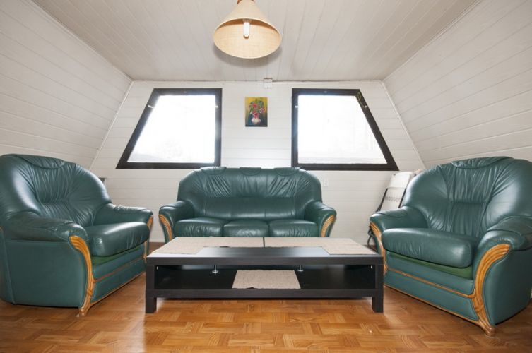 Na piętrze znajdują się dwie przestronne sypialnie, w których może spać maksymalnie 7 osób (2 materace dwuosobowe oraz drugi pokój z dwoma materacami dla 2 i 1 osoby)