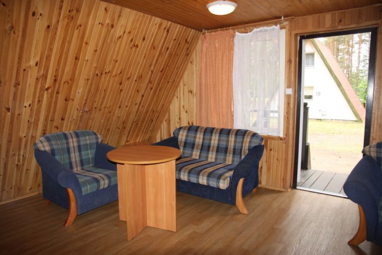 W ofercie noclegi w 82 całorocznych domkach turystycznych typu BRDA, przeznaczonych dla 4-6 osób, z salonem z TV i telefonem, aneksem kuchennym z barkiem i węzłem sanitarnym na parterze oraz dwiema dwuosobowymi sypialniami z pojedyńczymi łóżkami na piętrze.