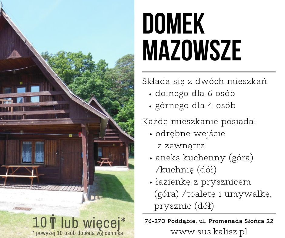 Ośrodek "SŁONECZNA POLANA" w Poddąbiu dysponuje 15 domkami letniskowymi typu "Mazowsze", 18 domkami letniskowymi typu "Mikołajki", domkami "Weekend" oraz 2 nowymi Apartamentami. Oferujemy domki 4 lub 6-osobowe.