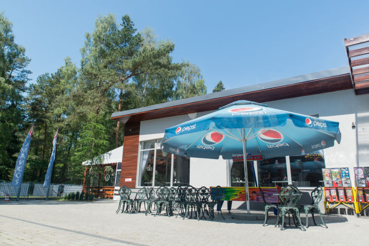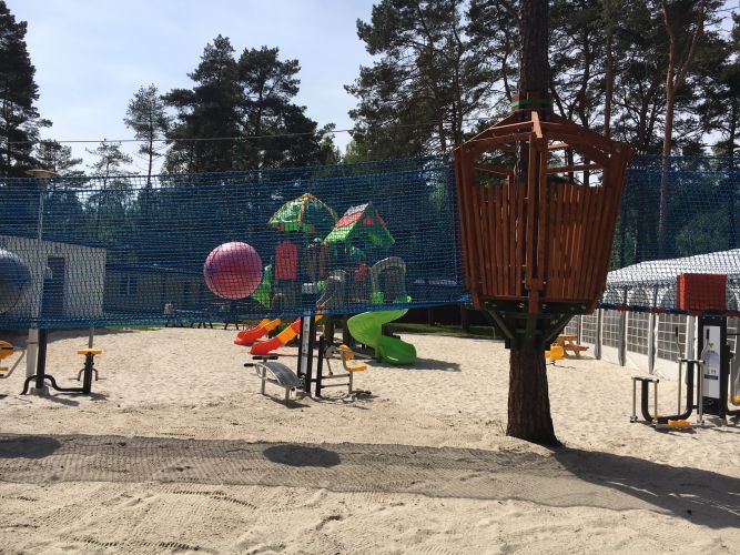 • część rekreacyjno–sportową (boisko do siatkówki, koszykówki, kometki, ping ponga, plac zabaw dla dzieci oraz namiot Gier i Zabaw),