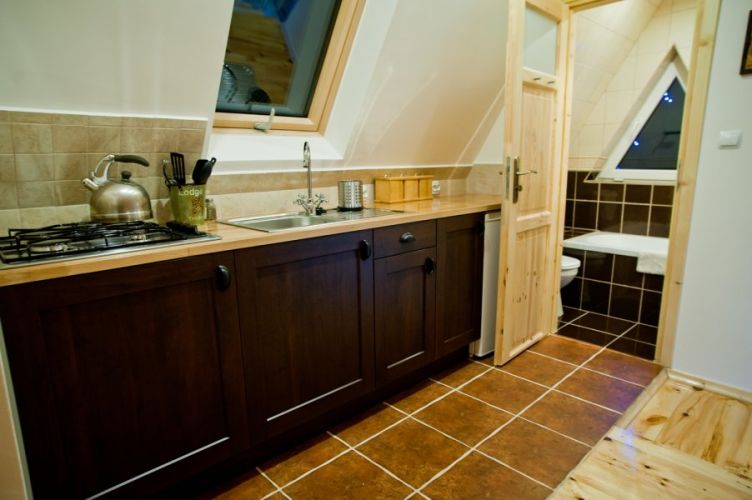 Do dyspozycji Gości na piętrze znajdują się w pełni wyposażone aneksy kuchenne.