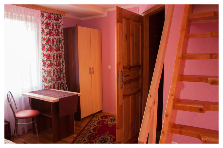 Do Państwa dyspozycji oddajemy trzy pokoje: 2-, 3- i 4-osobowe z antresolami bez wyżywienia. Pokoje są nowe i przytulne usytuowane na piętrze z osobną, zewnętrzną klatką schodową. Wszystkie pokoje posiadają łazienkę (kabina prysznicowa, umywalka, WC, mydło, ręczniki).