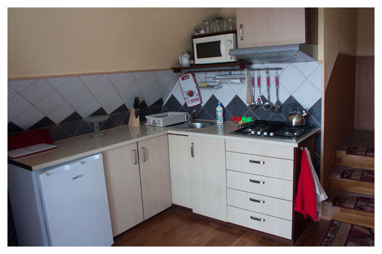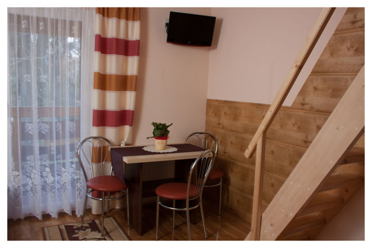Na wyposażeniu również: Telewizor LCD, Radio/Odtwarzać CD, Dostęp do internetu Wi-Fi, Balkon, AntresolaUdostępniliśmy w pełni wyposażony aneks kuchenny z tarasem dla wszystkich gości. Na wyposażeniu: Lodówka, Kuchenka gazowa czteropalnikowa, Zlewozmywak, Okap, Zastawa stołowa, Garnki.