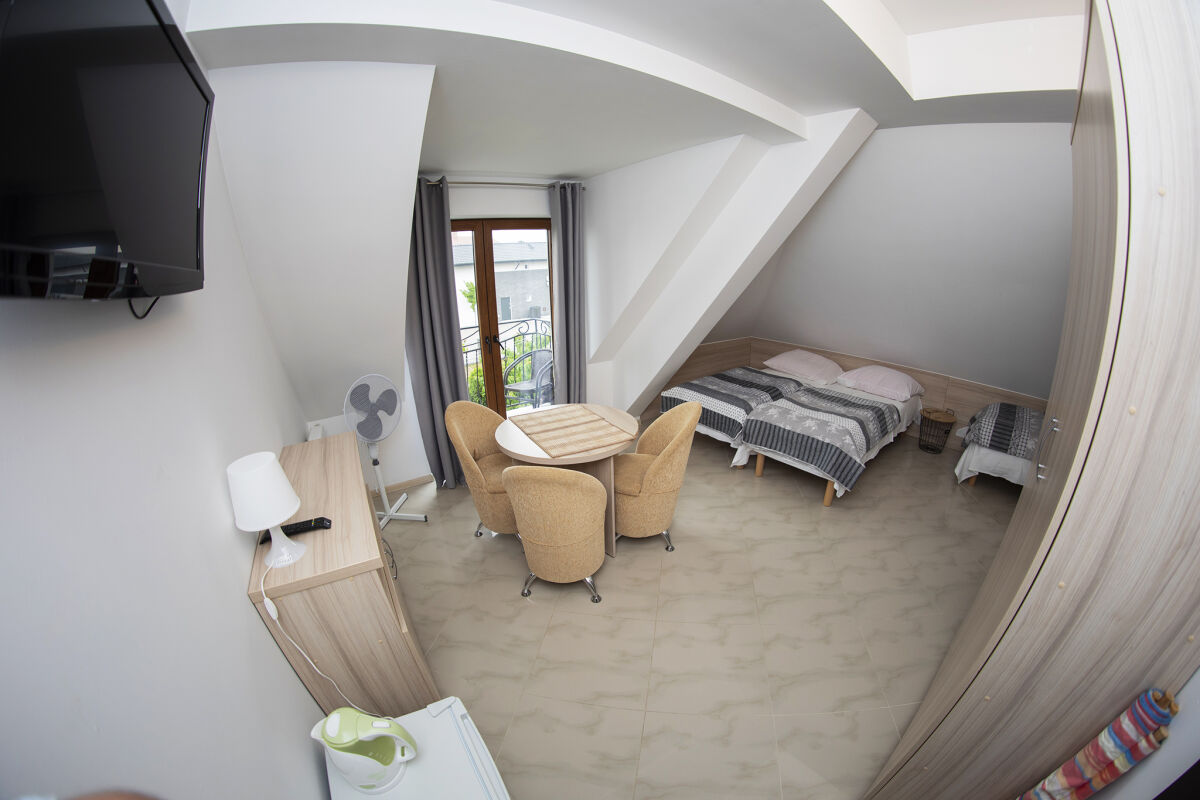 Pokoje są dwu i trzy osobowe. Zlokalizowane są na pierwszym piętrze (budynek niski). Każdy pokój z balkonem.