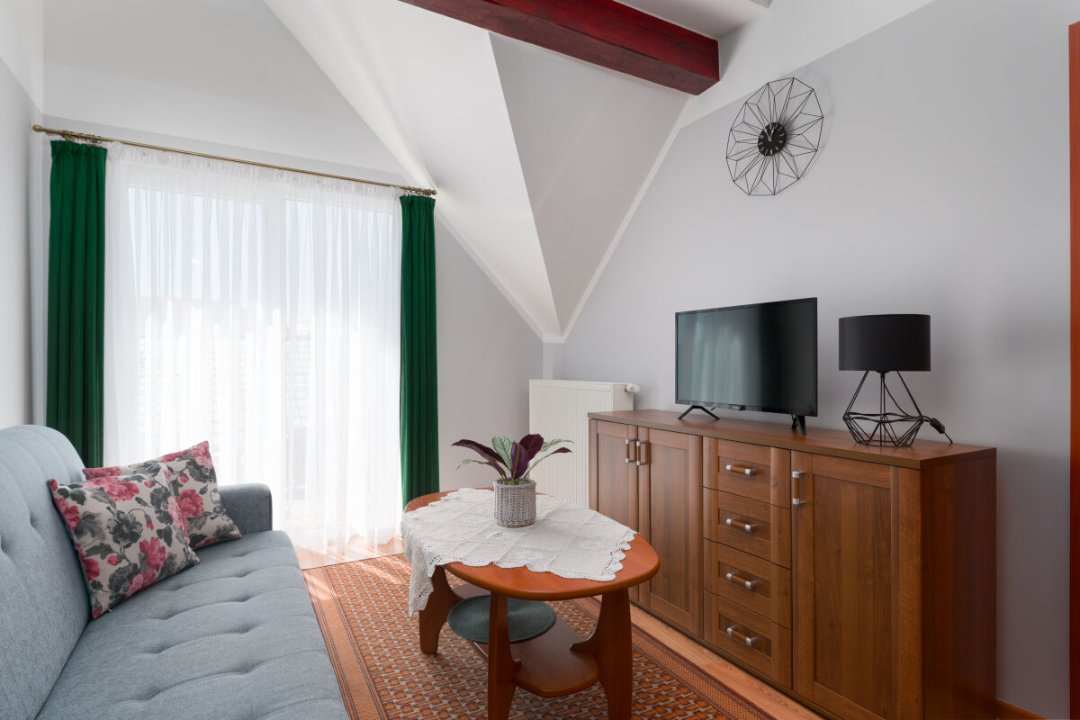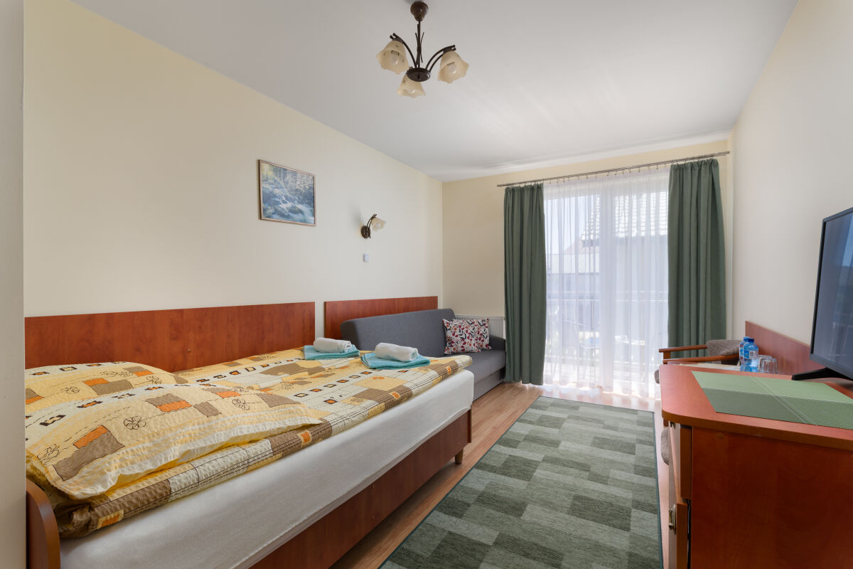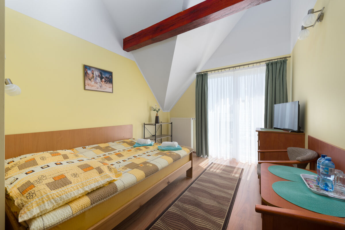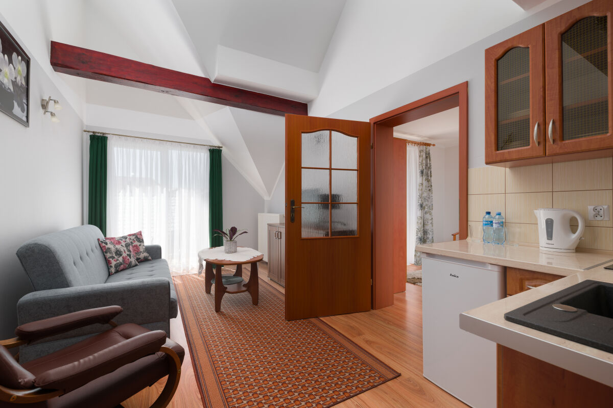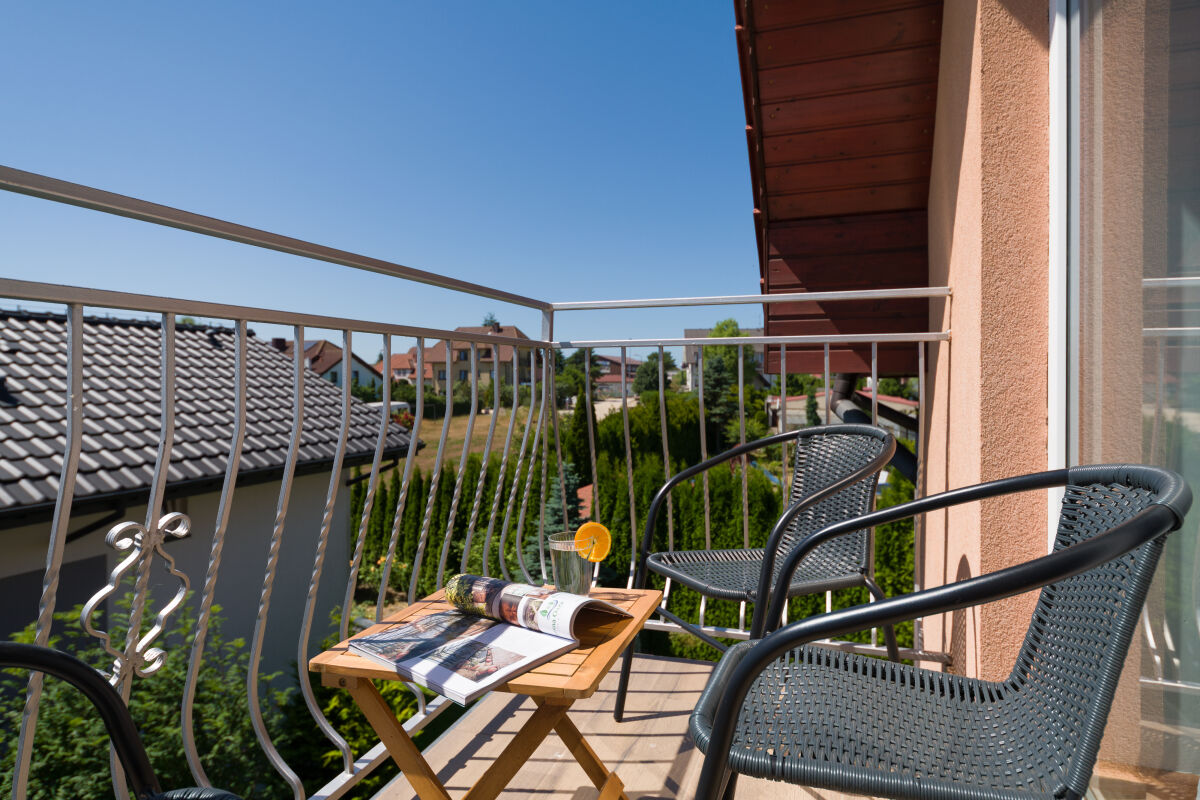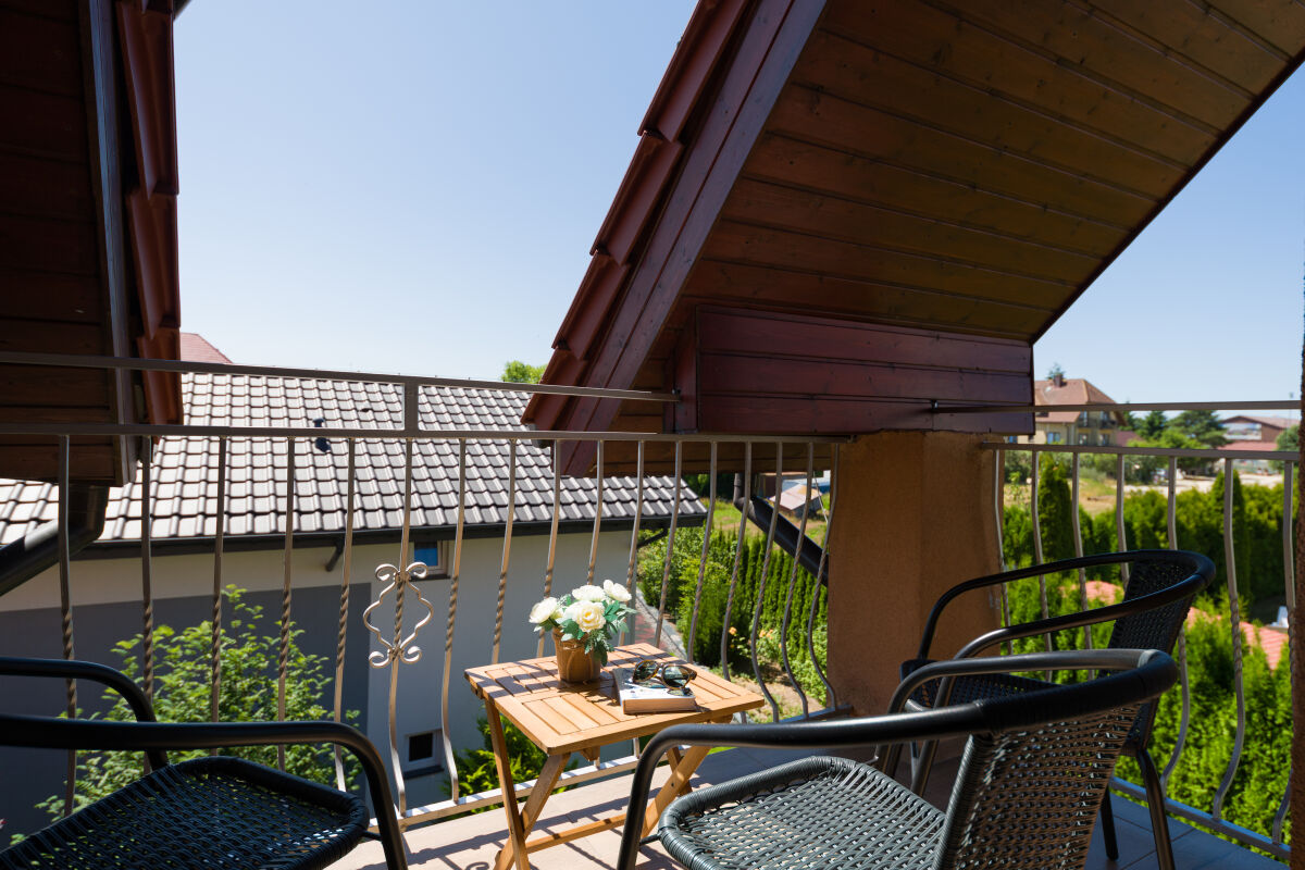 Wszystkie pokoje wyposażone są w prywatne łazienki, telewizory oraz lodówki, a większość z nich posiada balkony. Do dyspozycji Gości przygotowaliśmy także aneksy kuchenne na I i II piętrze z czajnikami elektrycznymi, kuchenką mikrofalową i niezbędnymi naczyniami.