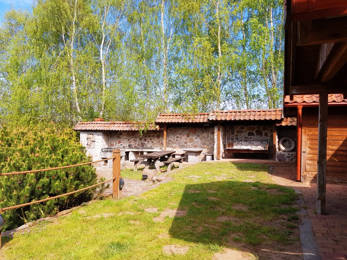 Całość stanowi przytulne i urokliwe wnętrze. Przed domkiem taras wypoczynkowy, zadaszony, również możliwość spożywania posiłków. Przed domkiem balia.