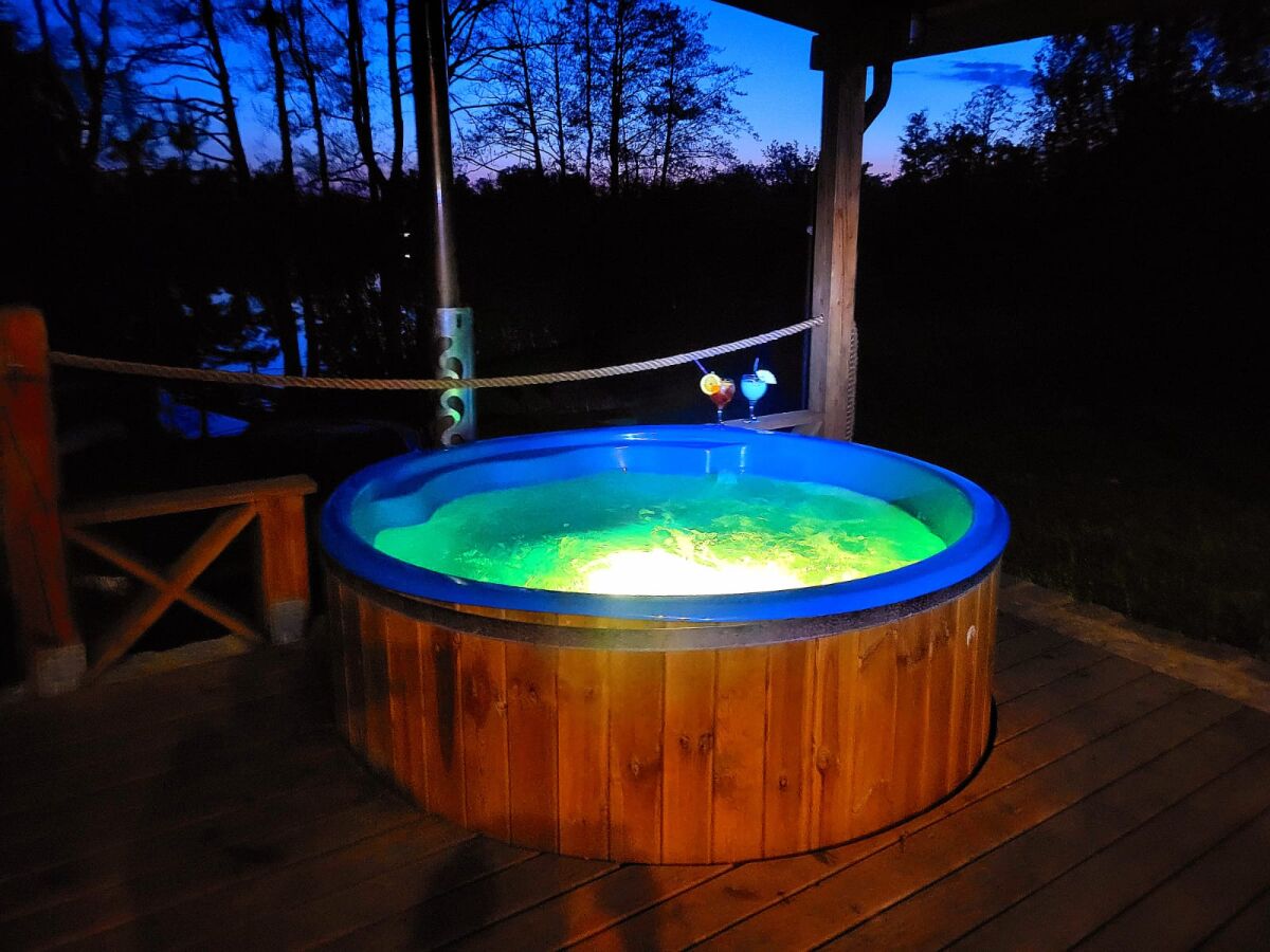 Dwa domki na dużej ogrodzonej działce( 80ar) z własną linią brzegową, plażą, pomostem, łódką i 2 kajakami. Atutem jest balia ogrzewana drewnem z opcją jacuzzi i oświetleniem w różnych zmieniających się kolorach z widokiem na jezioro!!!!!!!!!! Posesja w cichym ustronnym miejscu z dala od zgiełku i hałasu. Miejsce na prawdziwy odpoczynek i naładowanie baterii;) Można połowić rybki na pomoście, poczytać książkę na ławce bujanej, popijać piwko i opalać się na leżaczku. Dla aktywnych do dyspozycji kajaki i łódka lub rywalizacja w rzutki. Wieczorkiem ognisko i pieczone kiełbaski na kiju lub ziemniaczki z ogniska z solą -mazurska specjalność;) Dla miłośników odnowy biologicznej seans nocnego masażu pod gwiazdami w balii.