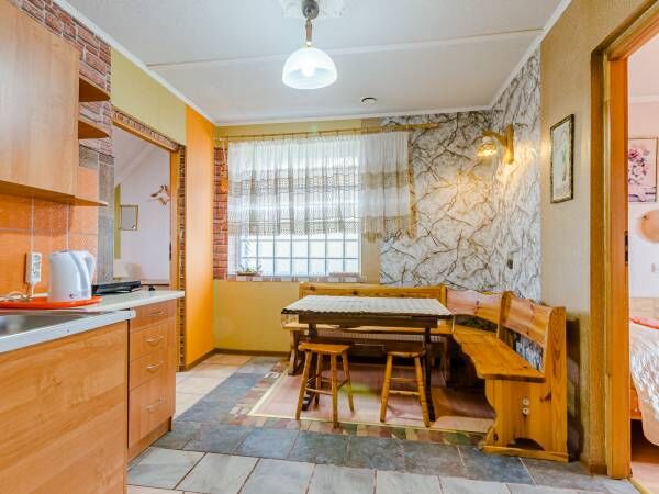 Dom w stylu retro, apartamenty i pokoje w niepowtarzalnym wystroju, komfortowo wyposażone. Duży ogród kwiatowy z zielonymi zakamarkami z ławeczkami altanki. GRILLE.Oddzielnie duży plac zabaw/trampolina, piaskownica, rowerek, zabawki/. Parking wydzielony na posesji. W domu pełne wyposażenie dostępne bez opłat. Rowery + fotelik dla dziecka.