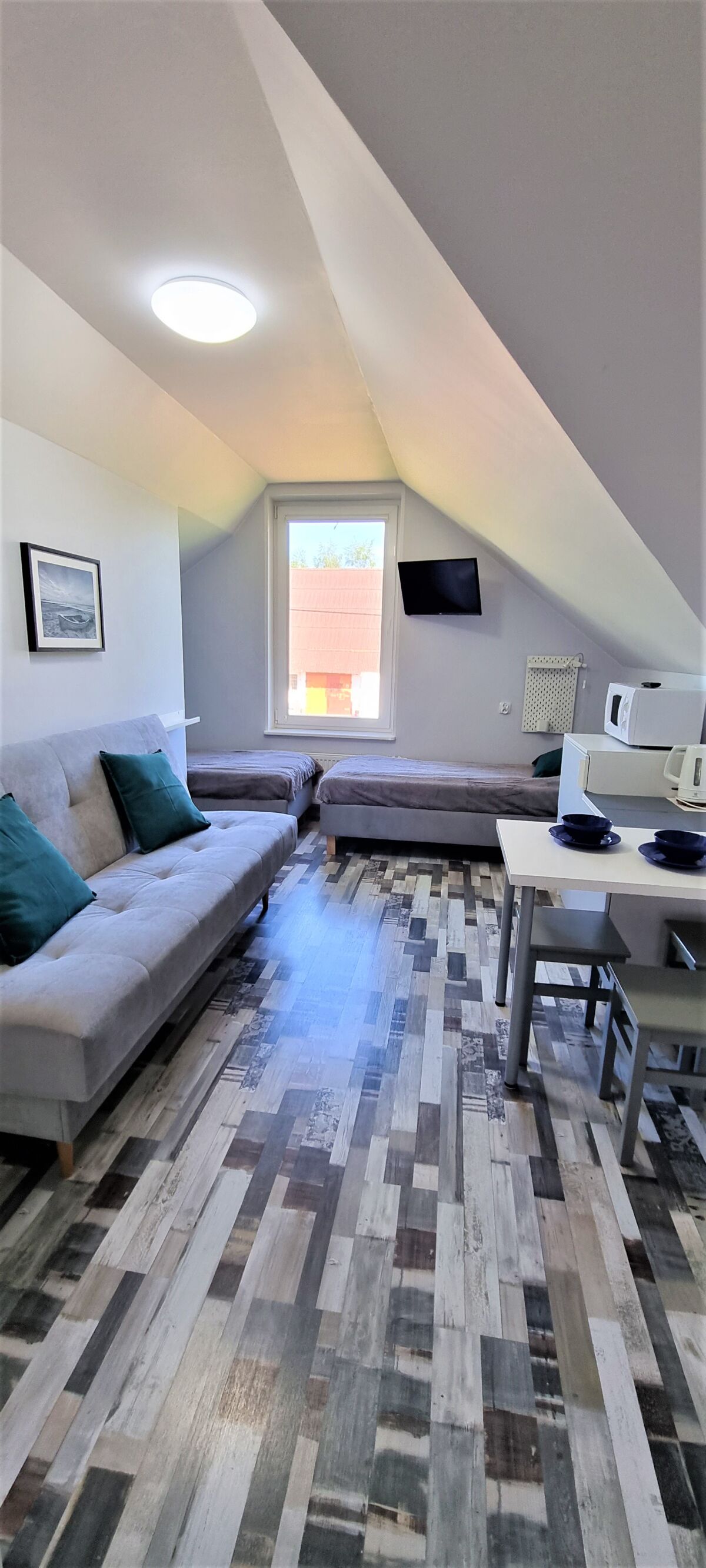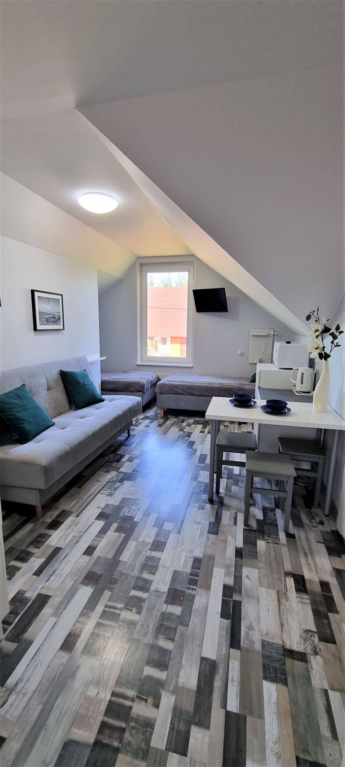 • antresola niska otwarta na salon z dwoma łóżkami 1-os