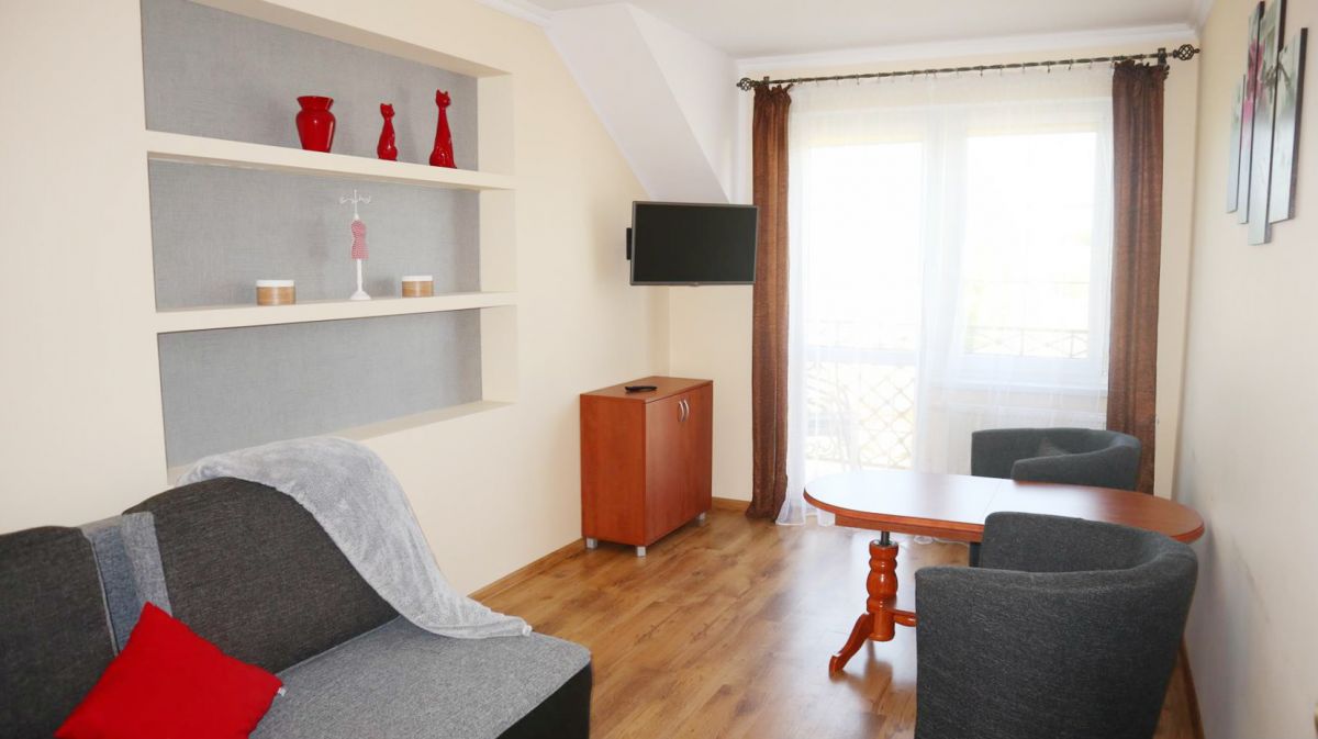 Apartament 40 m2 :kwiecień, maj, czerwiec, wrzesień, październik od 360 zł do 410 zł doba. Lipiec i sierpień od 420 zł doba