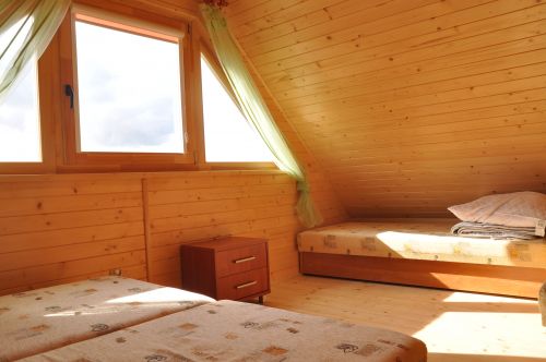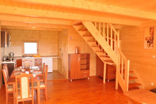 Na parterze pokój dzienny, aneks kuchenny i łazienka, a na piętrze dwie oddzielne sypialnie 3 i 4-ro osobowe także z furtką przy schodach.