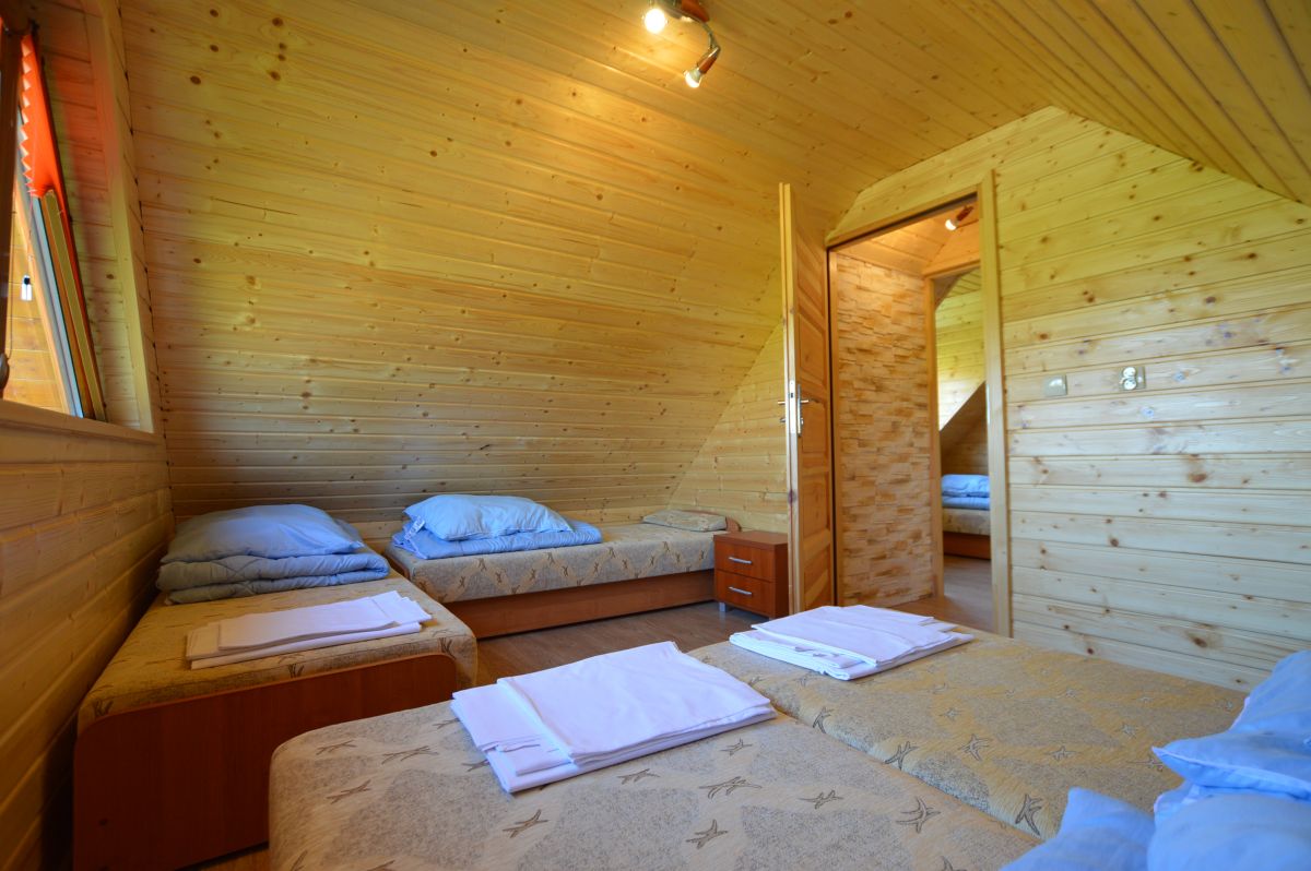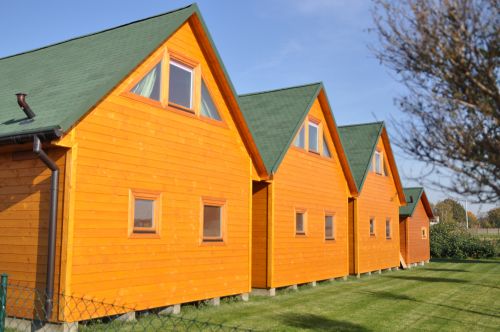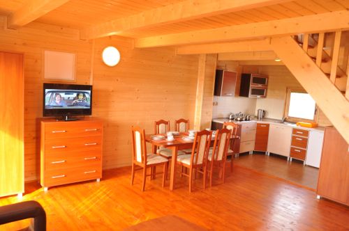 Domki 70 m / kw. od 6 do 10 osób, dwie niezależne sypialnie, pokój dzienny, kuchnia, łazienka, dwie toalety.