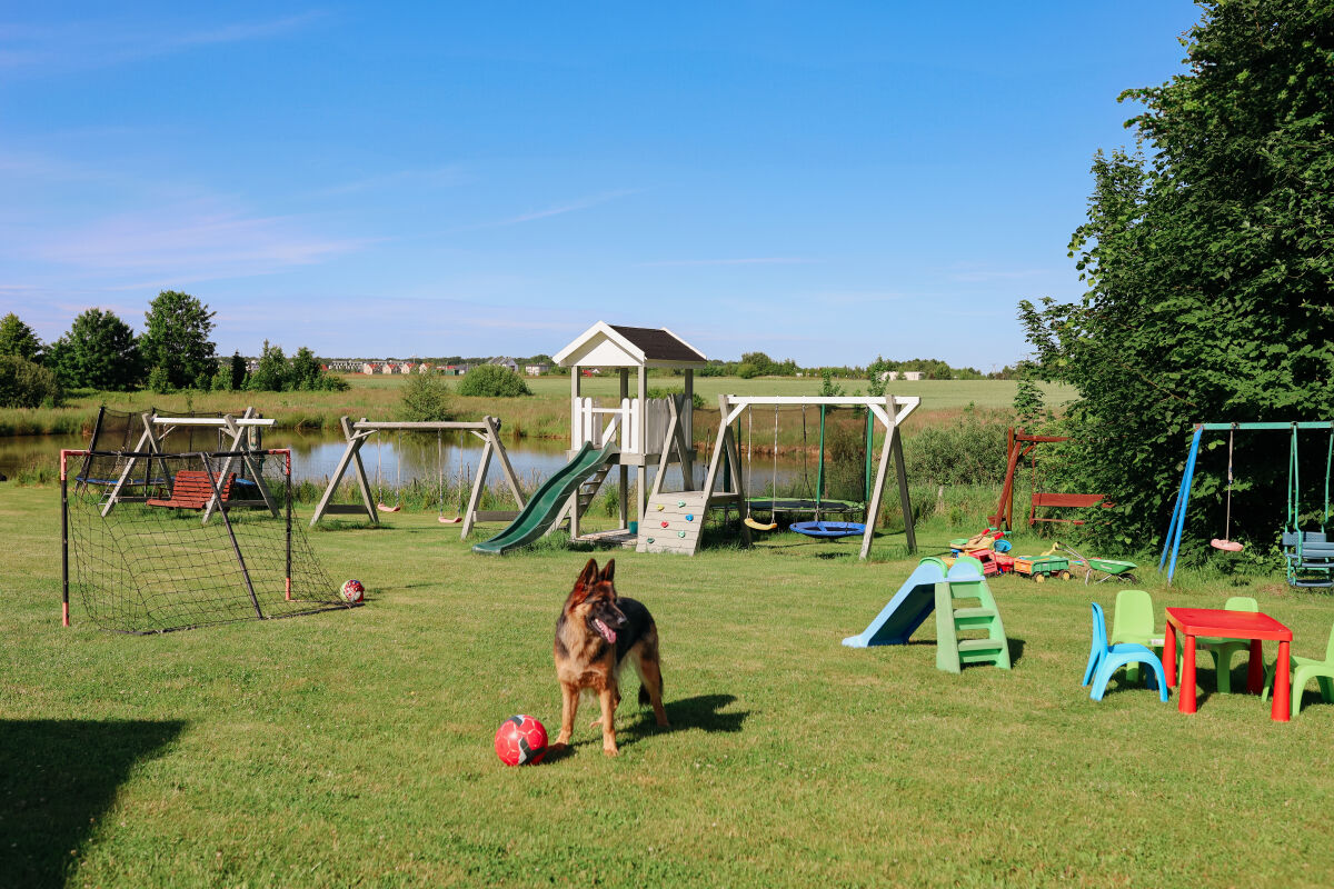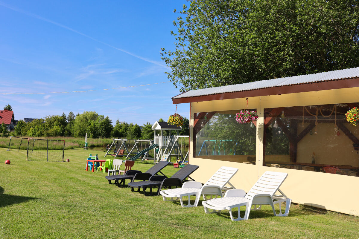 Teren jest ogrodzony, na terenie znajduje się plac zabaw dla dzieci,parking,boisko do siatkówki i do badmintona oraz dwa piękne stawy.